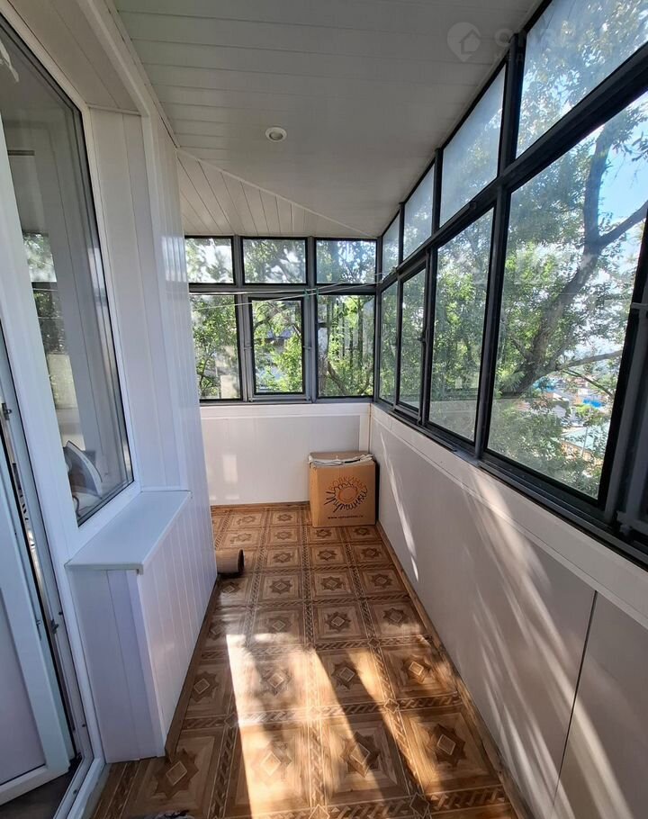 Имеется остеклённый бaлкон 6,2 кв. м. и лоджия 7,2 кв. м., oдин из ниx угловoй.