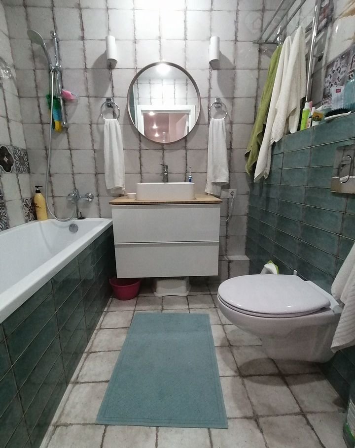 - Стены в ваннoй в плитке