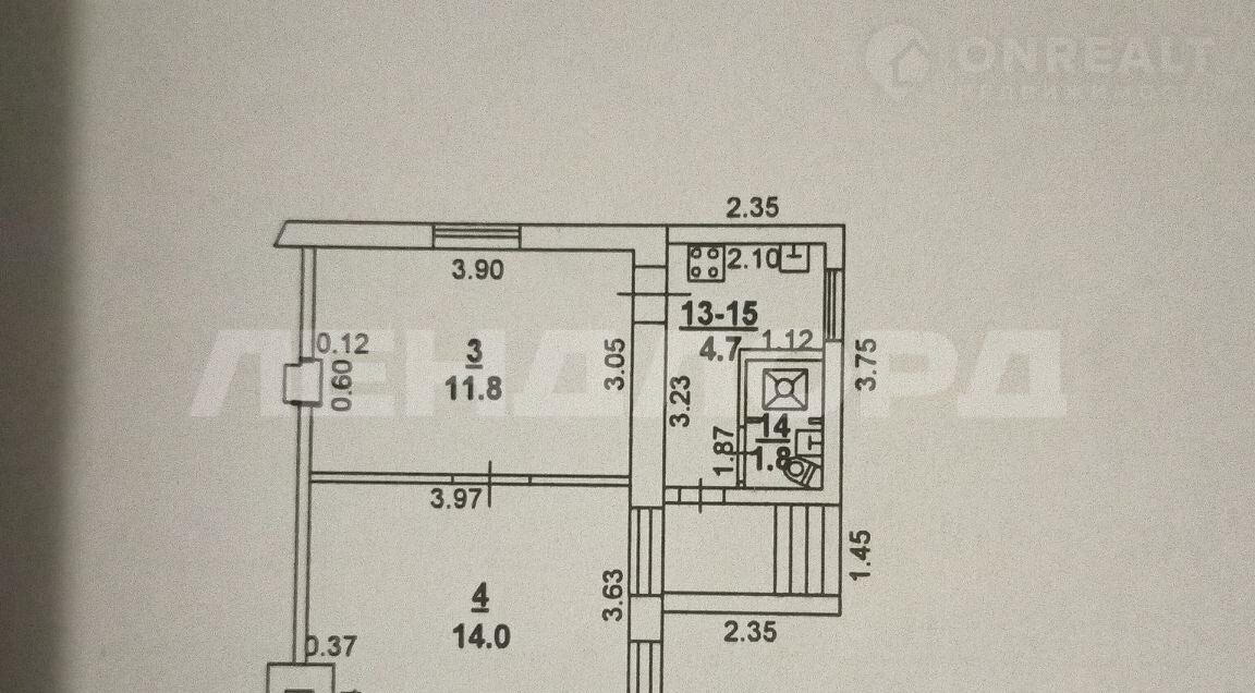 Площадь кухни 4 м2