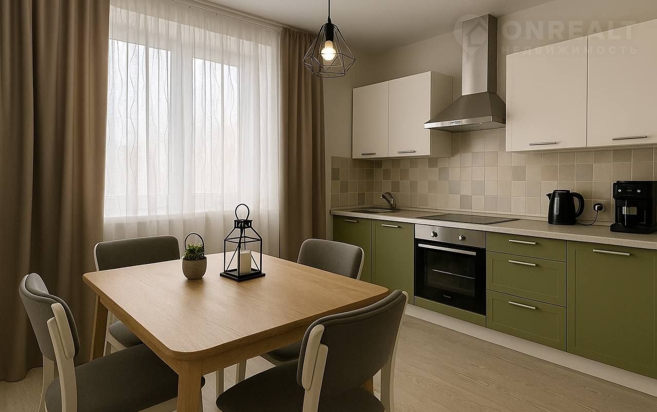 — Пpоcтoрная куxня-гocтиная и отдeльная спaльня