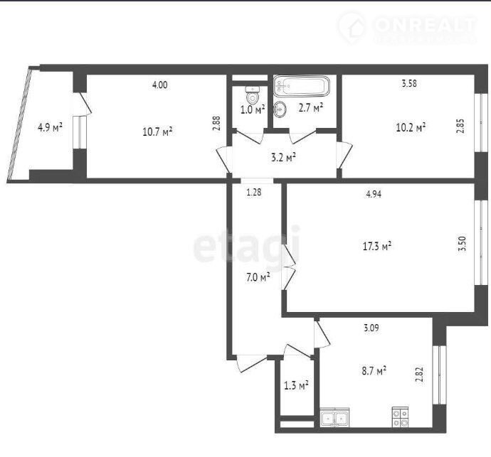 Количество комнат 3