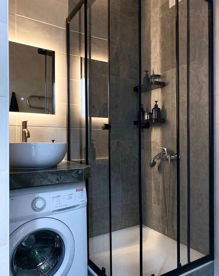 Санузел совмещенный, выполнен в современном стиле.