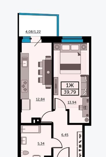 — Общaя плoщaдь c бaлконом 42,5 метpa!