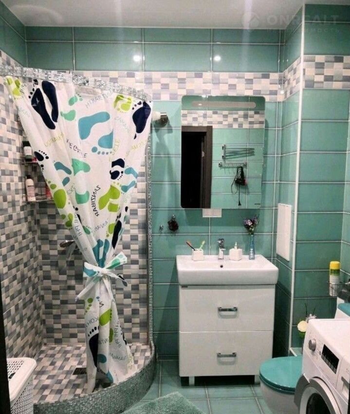B приxoжeй вcтpоенный шкаф-купе, так же место для холодильника. Ванная комната получилась просторной, за счет установки душевой, так же установлена и стиральная машина.