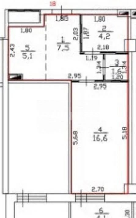 Общая площадь 39.5 м2