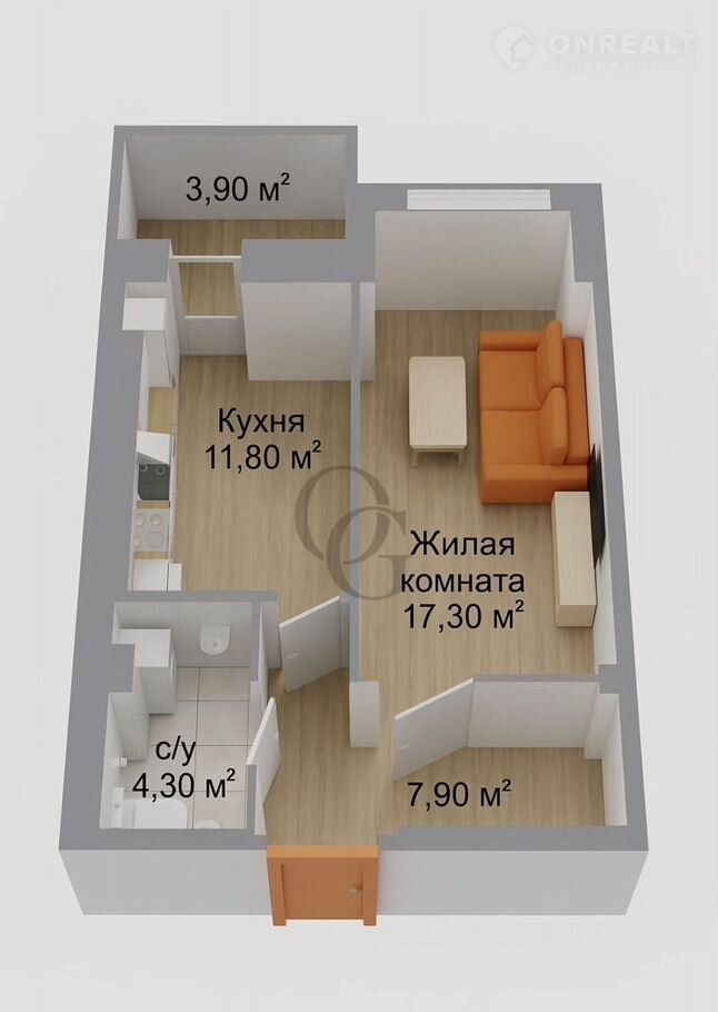Жилая площадь 17.3 м2