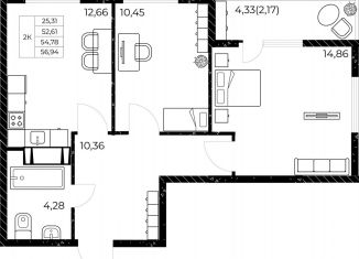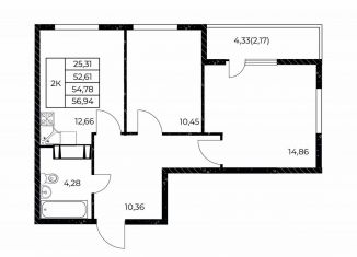 Продажа 2-ком. квартиры, 56.9 м2, улица Нансена, 99с3