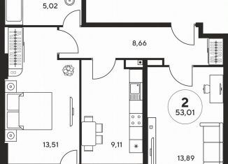 Двухкомнатная квартира на продажу, 53 м2