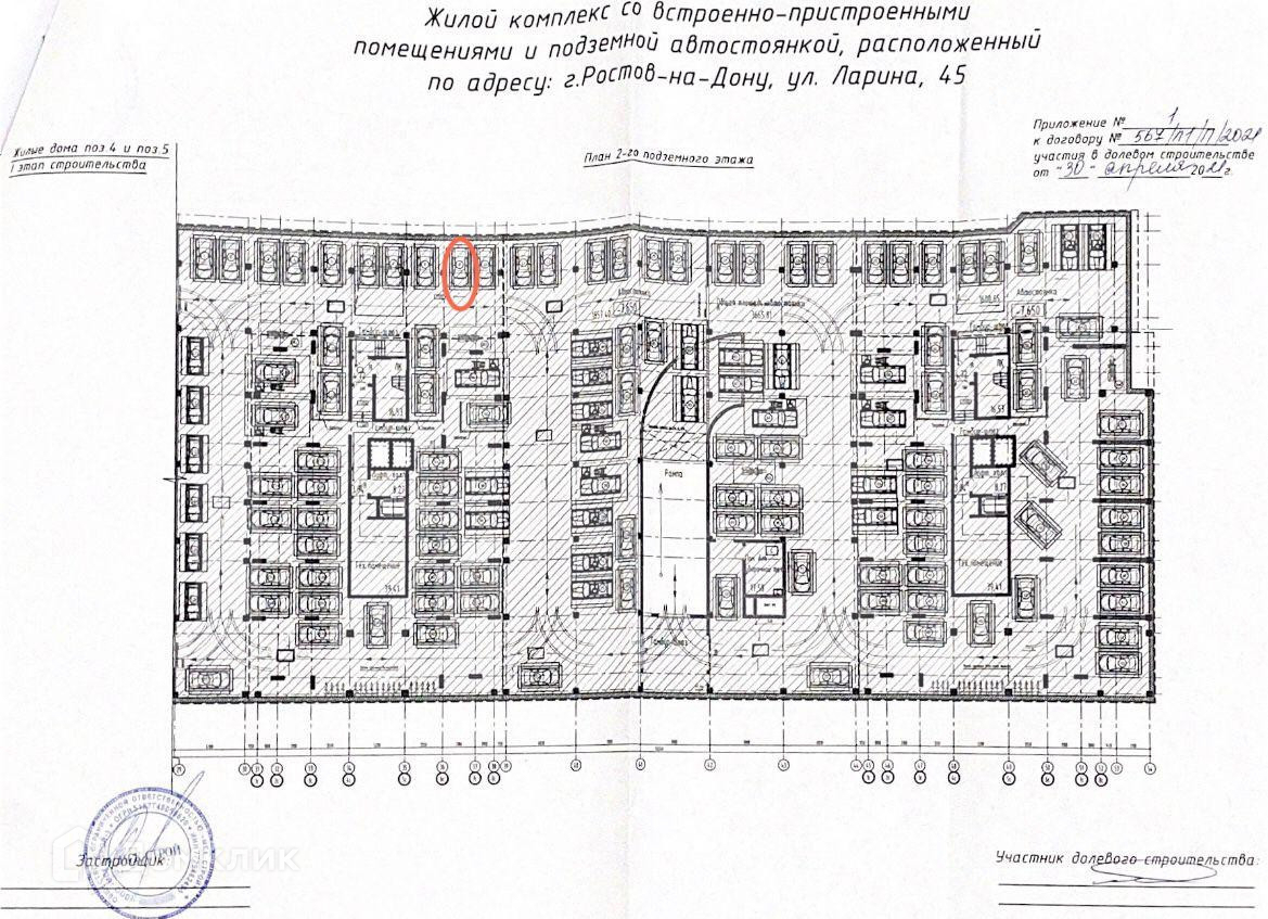 Арт. 53481331 Продается машиноместо Ларина 45 строение 1 , подъезд 1 Сердце Ростова 2 номер места 9.