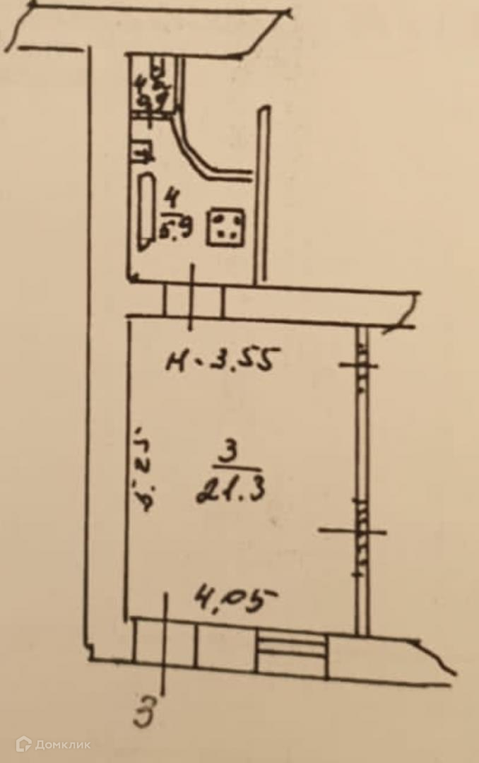 Планировка: рабочая комната 21 метр, подсобное помещение 3 метра, с/у совмещен 4 метра.