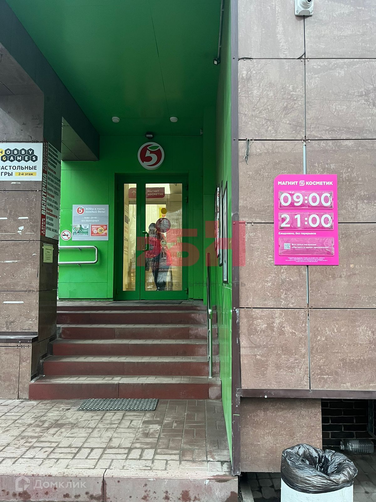 - 1-й этаж занимает трафикообразующий супермаркет Пятерочка, на 2-ом этаже располагается супермаркет Магнит косметик