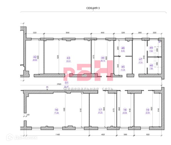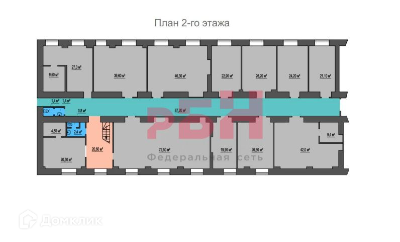 2-й этаж 525 кв.м. Из них количество кабинетов 12