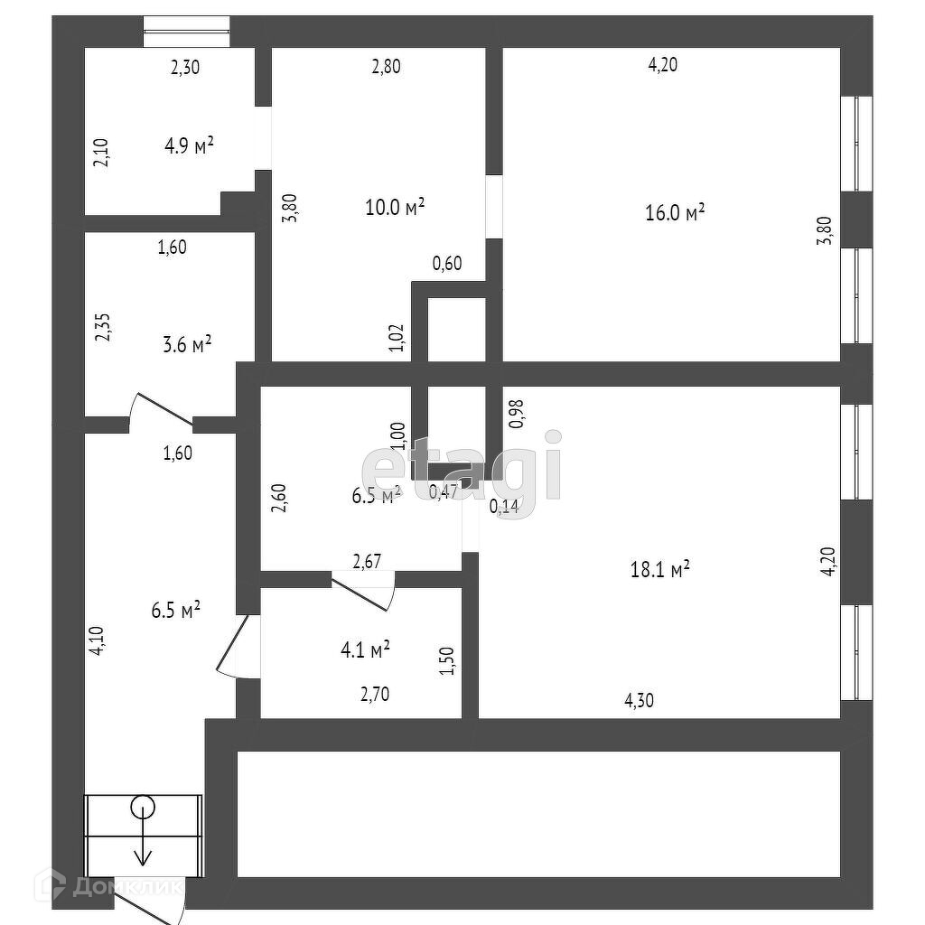 Общая площадь 69.8 м2