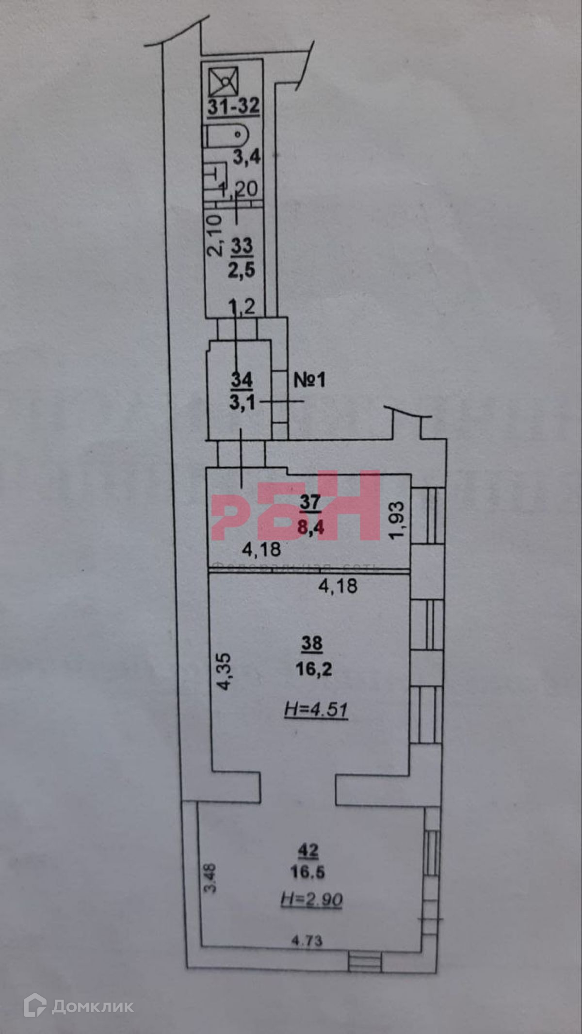 - высота потолков 4.51м