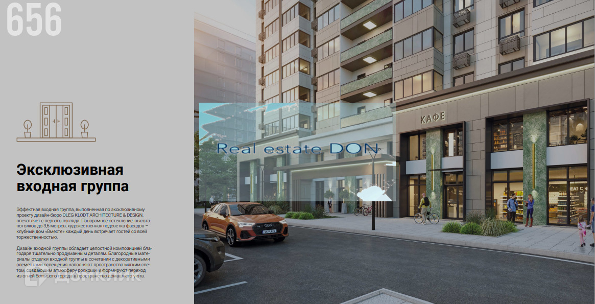 ЖК «Вместе» — это 1 корпус высотой в 16 этажей. В облицовке здания используются современные вентилируемые навесные фасады белого цвета с ярким цветным акцентом. В доме выполнена дизайнерская отделка входной группы, установлены современные лифты, продуманы колясочные с мойкой для лап животных. В жилом комплексе «Вместе» предложено множество планировочных решений: в наличии квартиры, как классического типа, так и европланировки. Сдаются они без отделки и высотой потолков 2.7 метра. Из окон квартир на последних этажах открывается панорама на город, вдали можно увидеть Дон. Придомовая территория проекта «Вместе» благоустроена, во дворе выполнен ландшафтный дизайн, установлены детская и спортивная площадки, организованы места для отдыха. На первых этажах дома спроектированы коммерческие помещения. Для владельцев автомобилей предусмотрены стоянка и подземный паркинг. Жилой комплекс «Вместе» находится в развитом Советском районе. В пешей доступности находятся детские сады, школы, магазины ТЦ «Талер», медицинские учреждения. До центра города можно добраться за 20 минут транспортом.