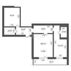 4-й этаж- 54,7 м2.