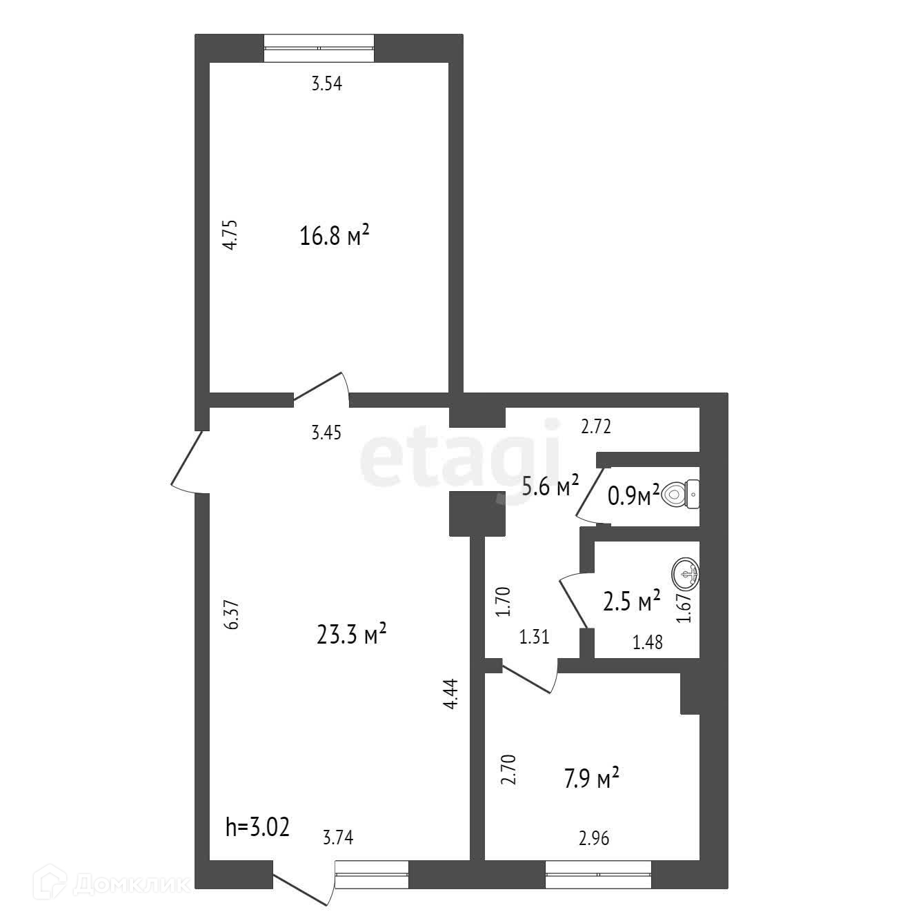 Общая площадь 57 м2