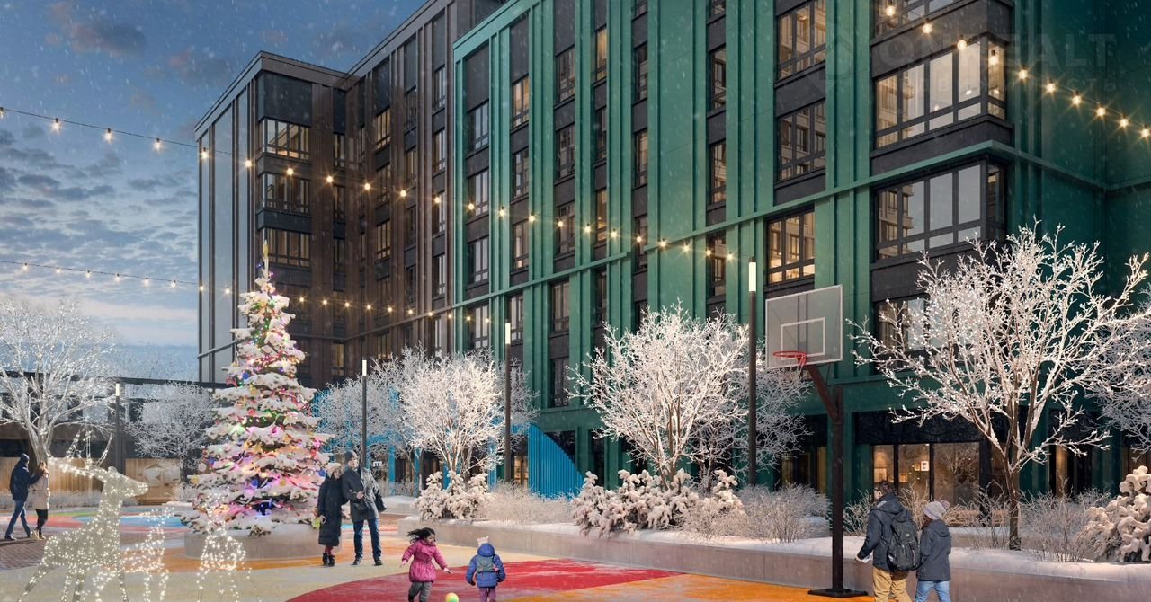 Закрытый двор без машин с детской площадкой для разных возрастов. Для взрослых во дворе будут зоны для спокойного и активного отдыха;