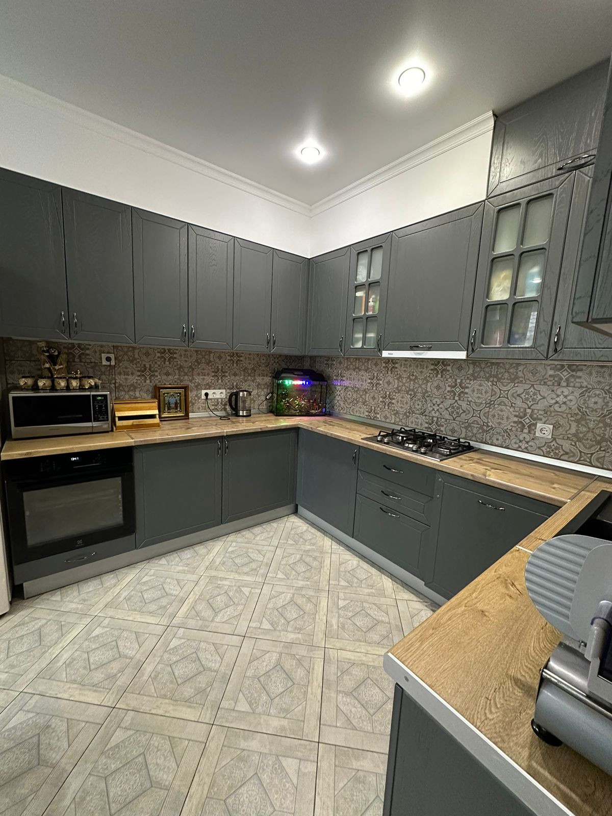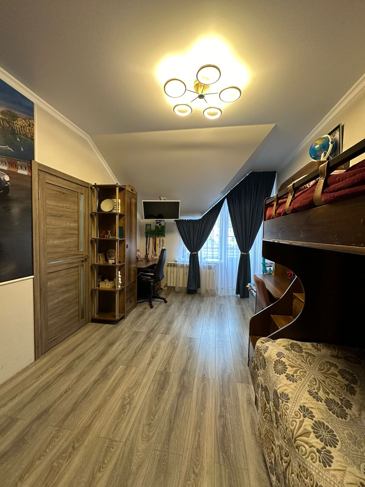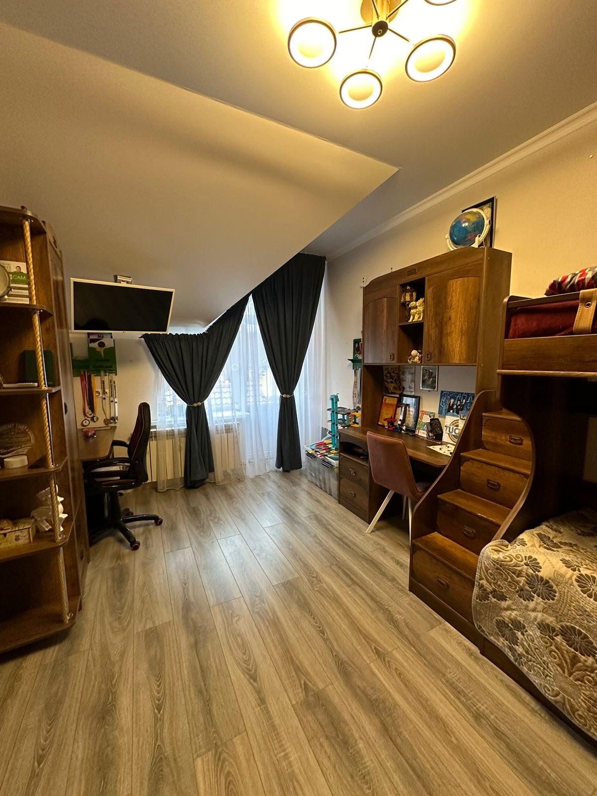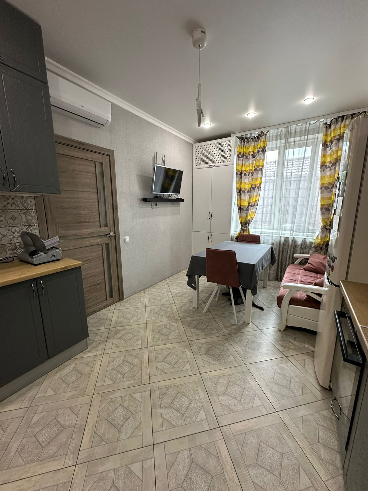 Площадь общая 91,9 м2, кухня - 15,9 м2, двухконтурный газовый котел, два санузла, теплые полы, хороший ремонт делали для себя. Все остается по договоренности.