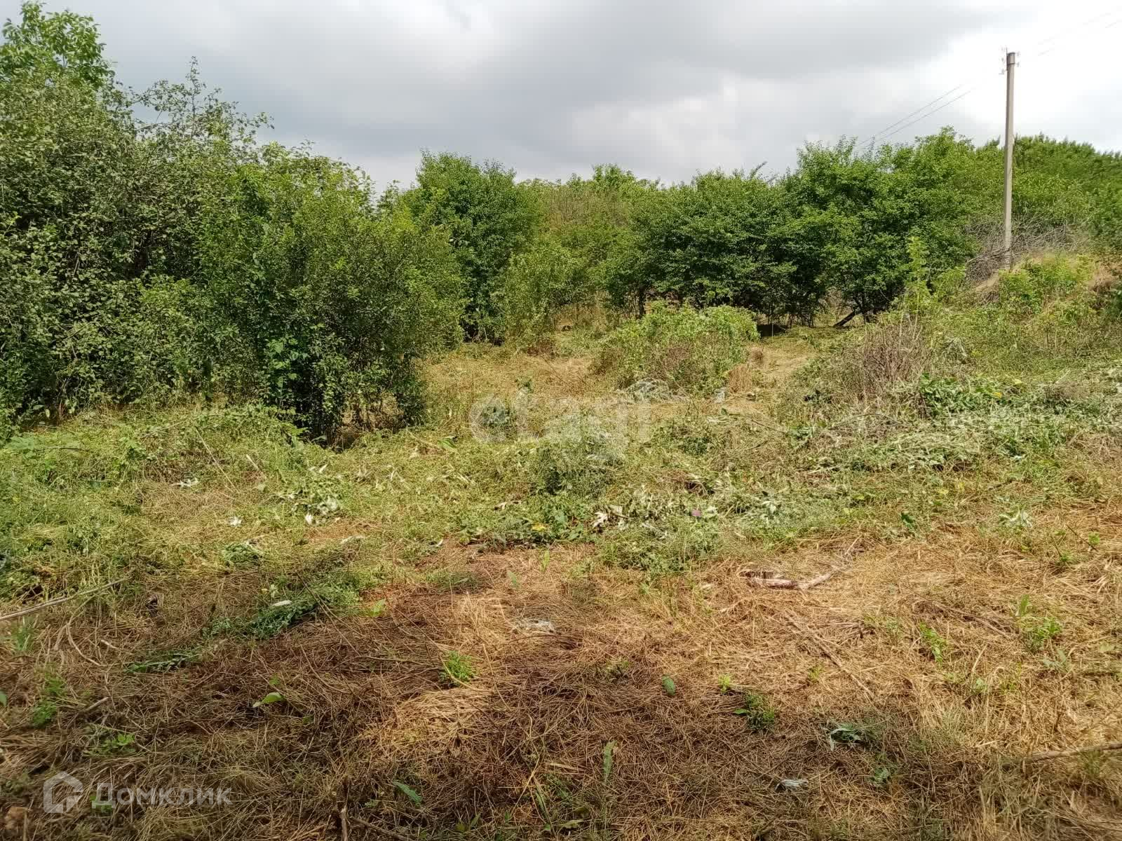 Участок без строений, необработанный, есть несколько деревьев. Ограждение отсутствует.