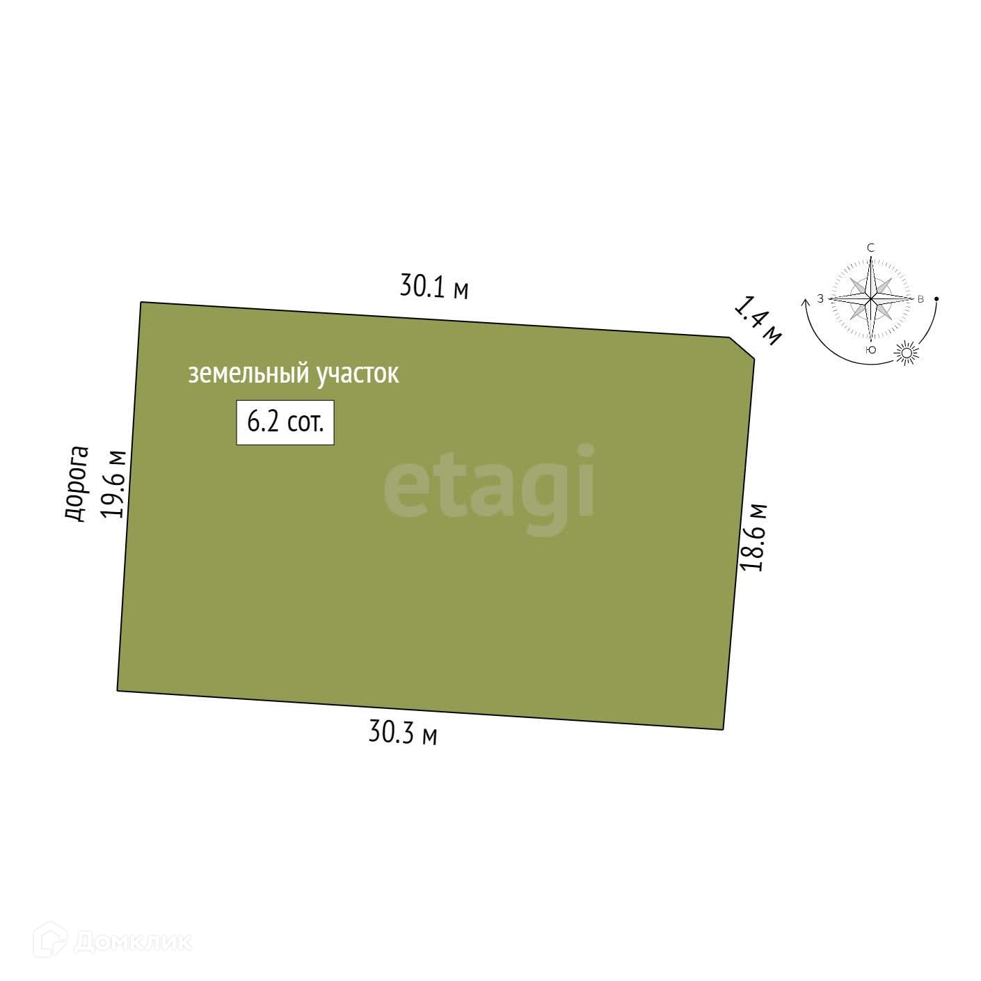 Площадь участка 6.2 сот.