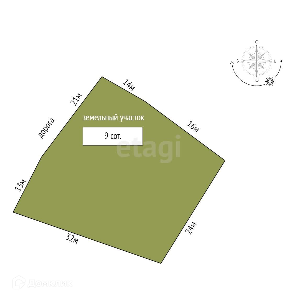 Площадь участка 9 сот.