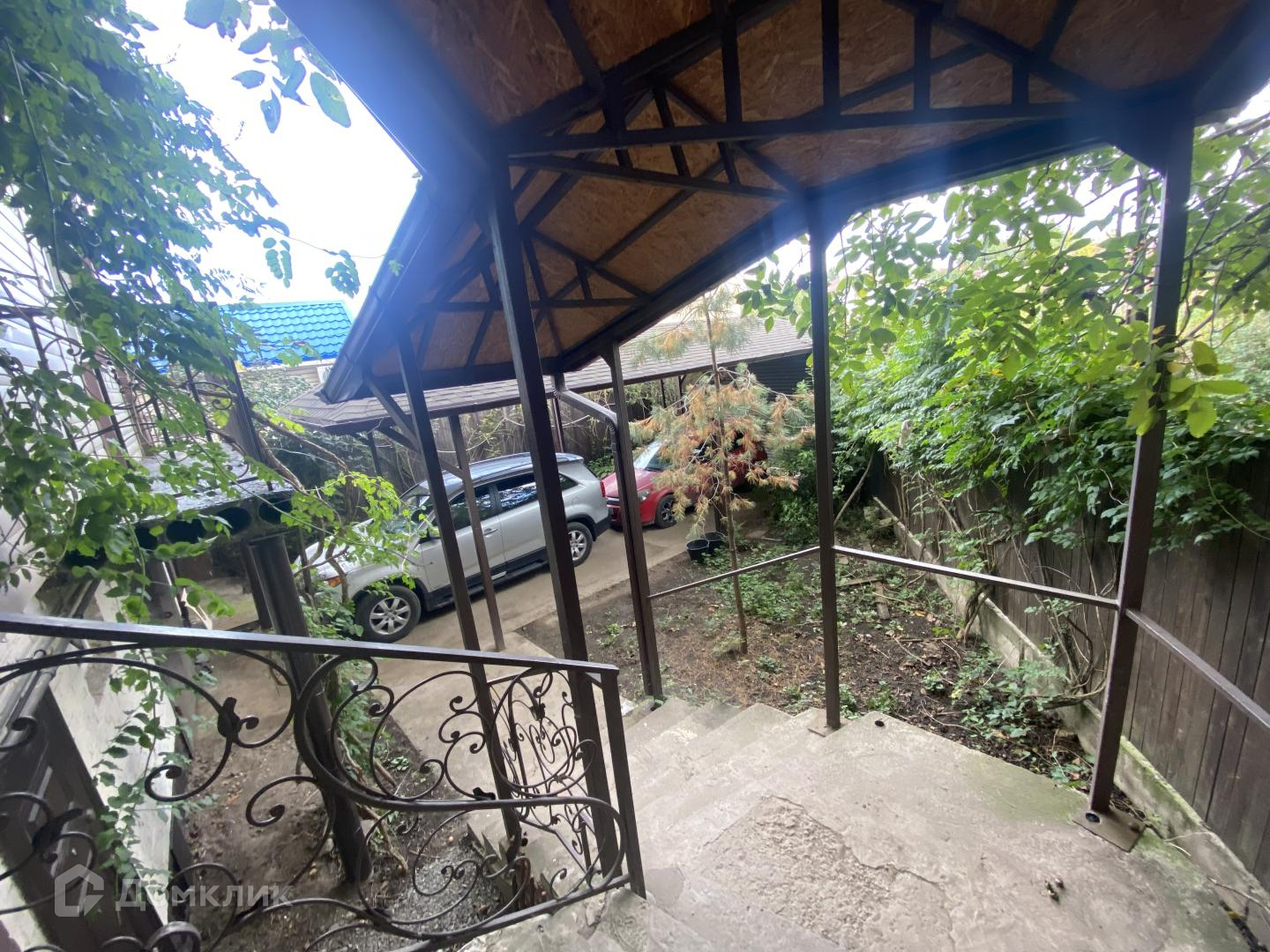 Домовладение расположено на земельном участке 10 соток, фасадная часть участка- это въезд на 2 авто под навесом, пареная лестница в дом и сам дом, задняя часть- это зона отдыха с местом под барбекю и качели, а так же расположен банный комплекс + на 2 м этаже место для мастерской с террасой для отдыха.
