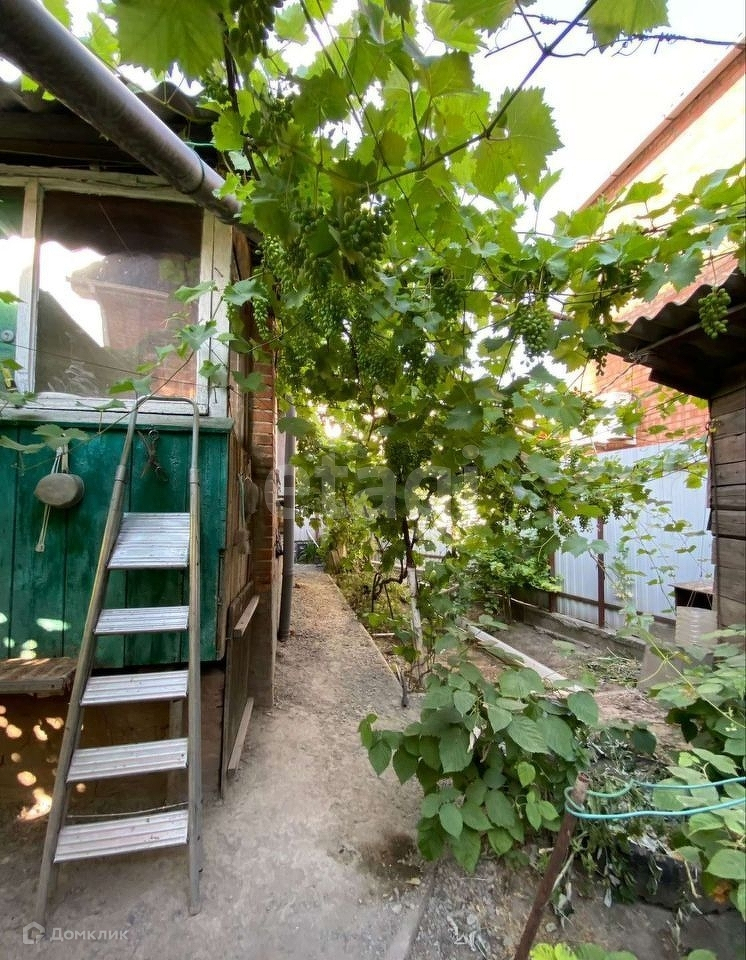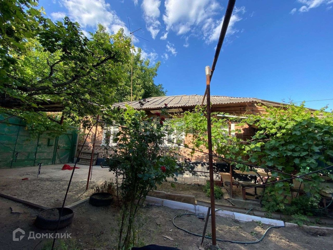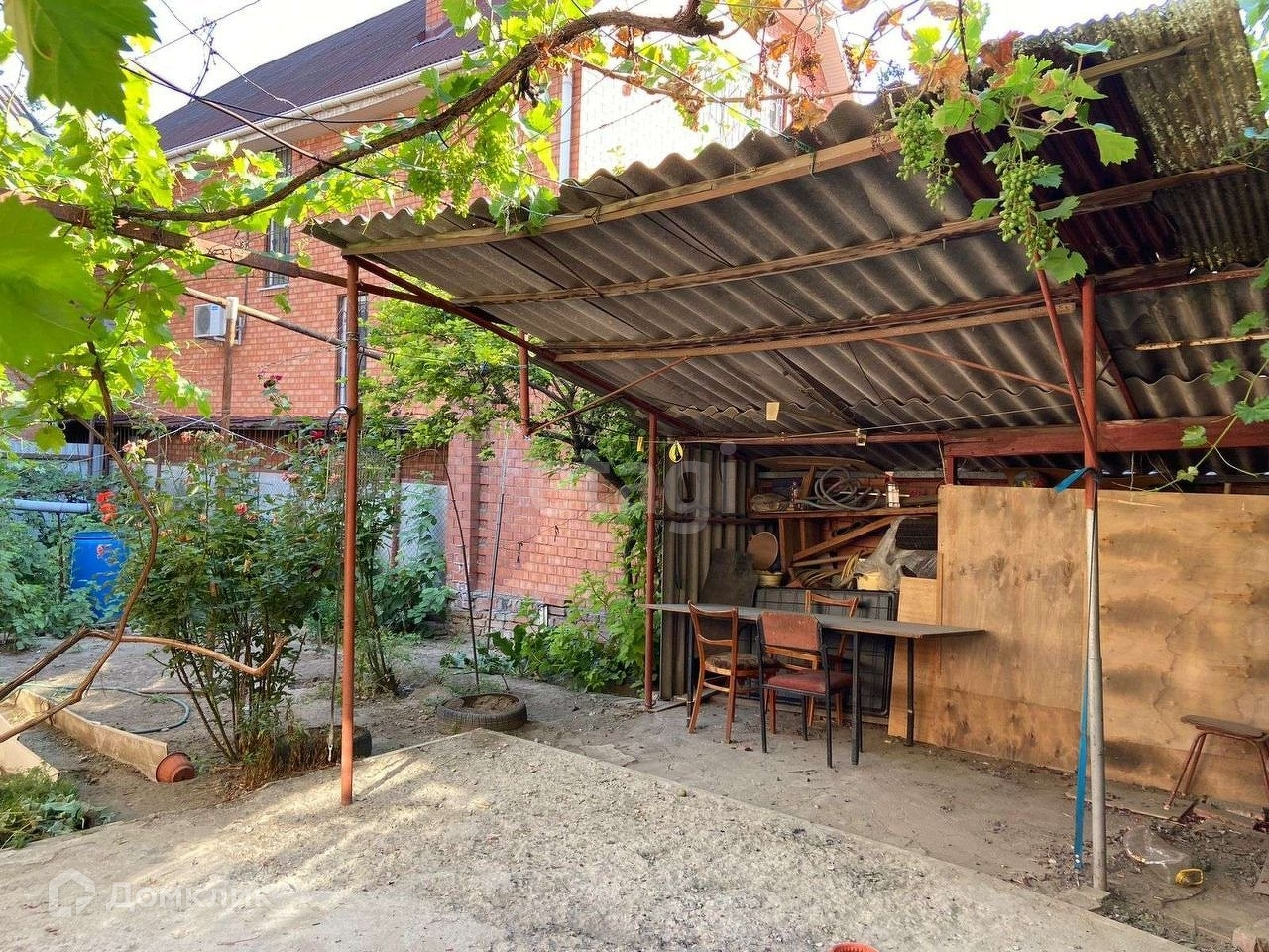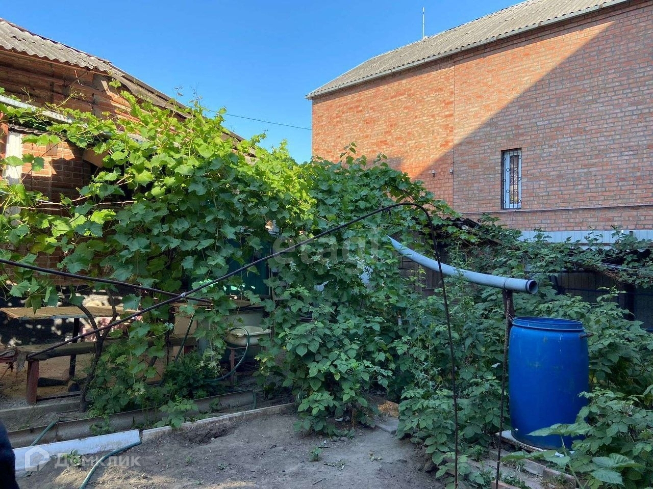 Во дворе растут малина и виноград.