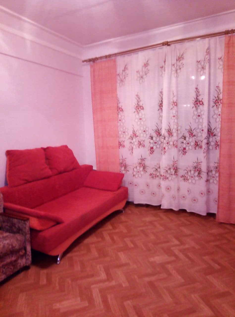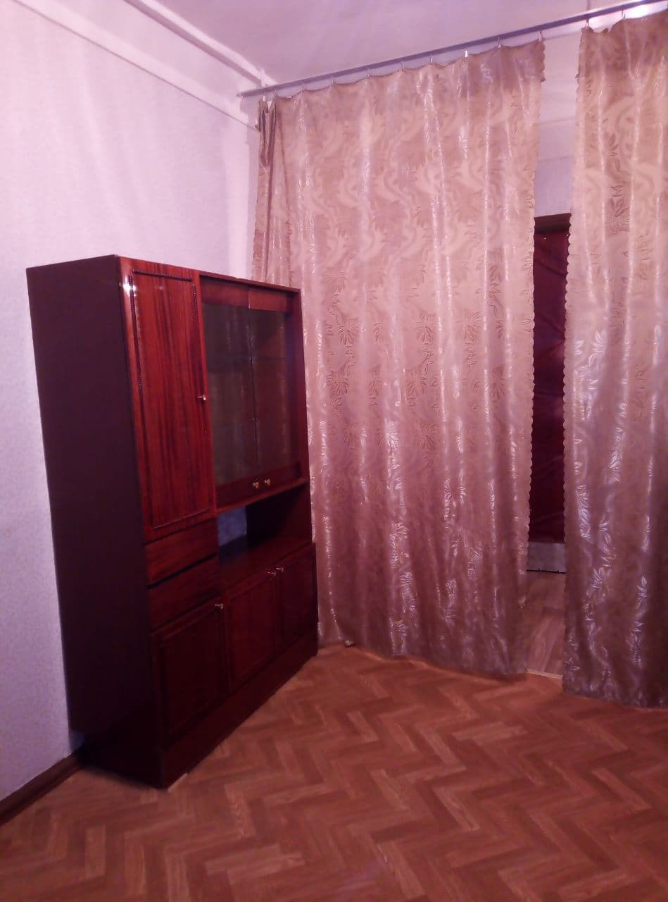 Комната в общежитии (сталинка), теплая, светлая, просторная. Потолки 3 метра. Раскладной 2-местный диван, раскладное кресло, дополнительные шкафы в коридоре и на кухне. Кухня, туалет, умывальники, стиральная комната на этаже. Парковка возле дома, во дворе детская площадка. Звоните, покажу в любое время (я собственник).