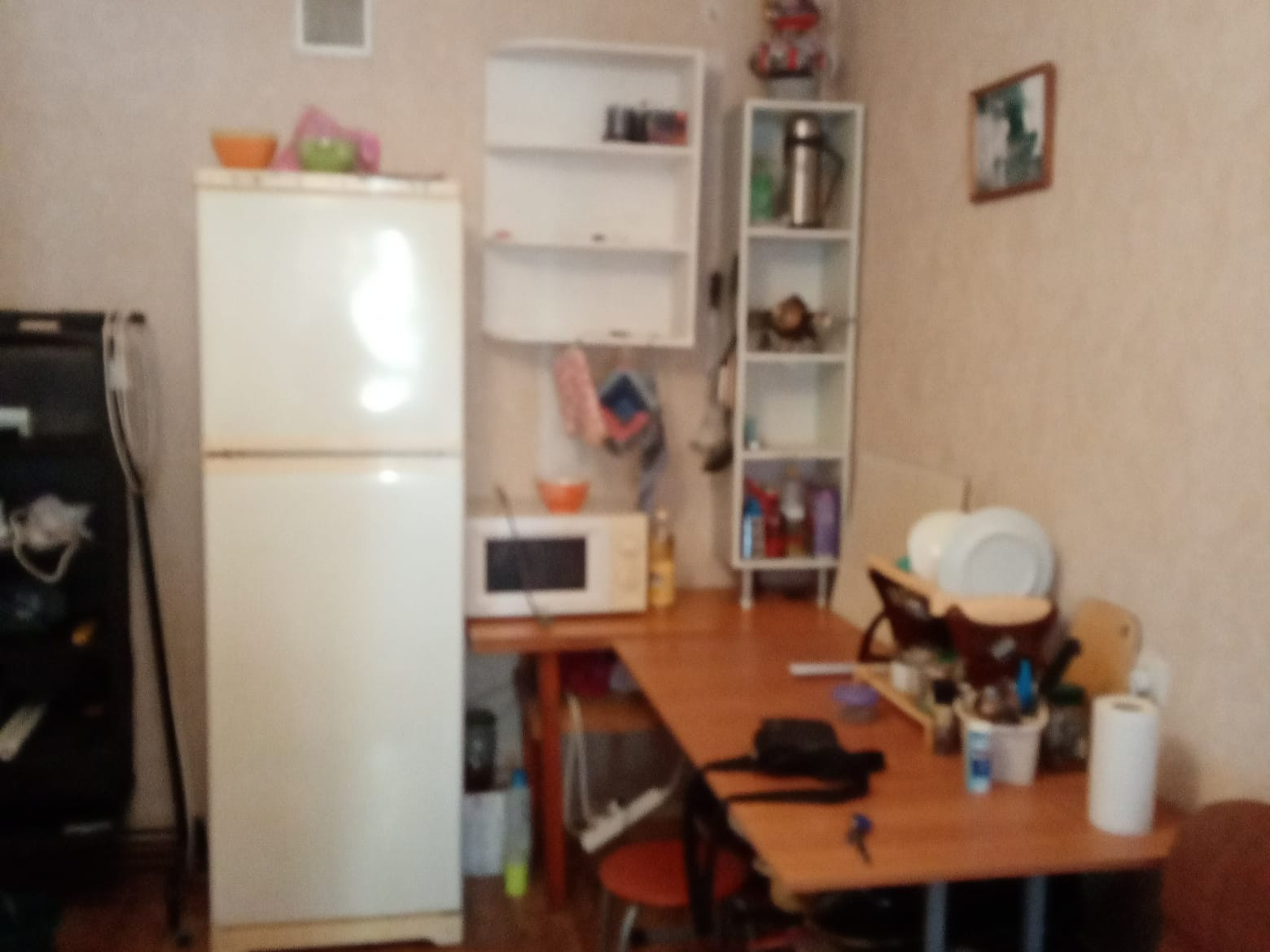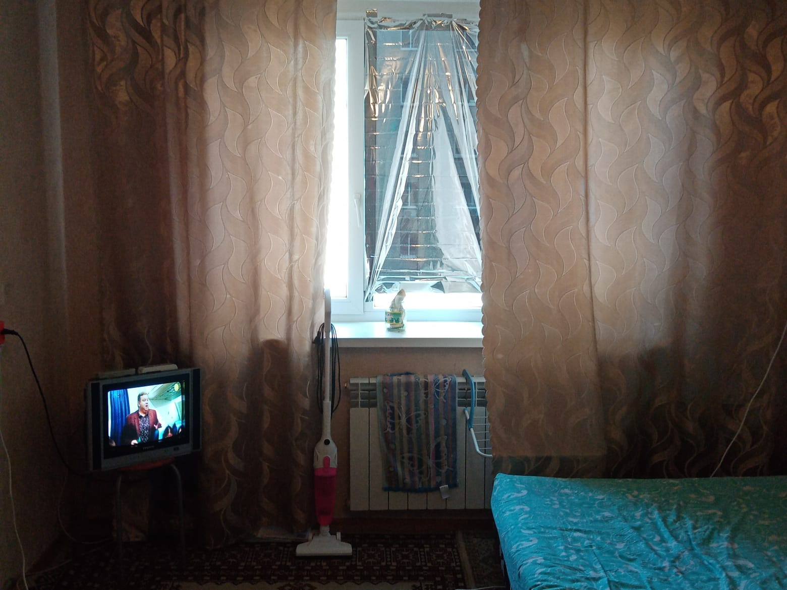 В комнате  имеется телевизор,сплит система,новые радиаторы отопления,м/п окна,стиральная машина,микроволновая печь,мебель,посуда.