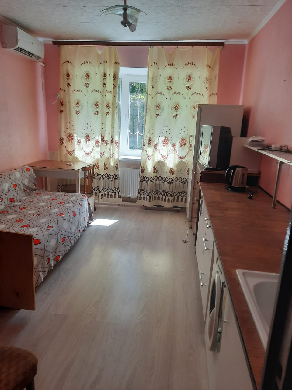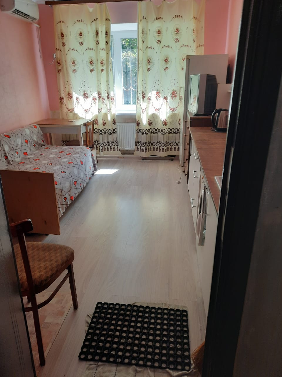 Сдается комната в коммунальной квартире.В комнате есть все необходимое для комфортной жизни: сплит система,холодильник,стол,диван,раковина ,кухонный стол,шкаф.