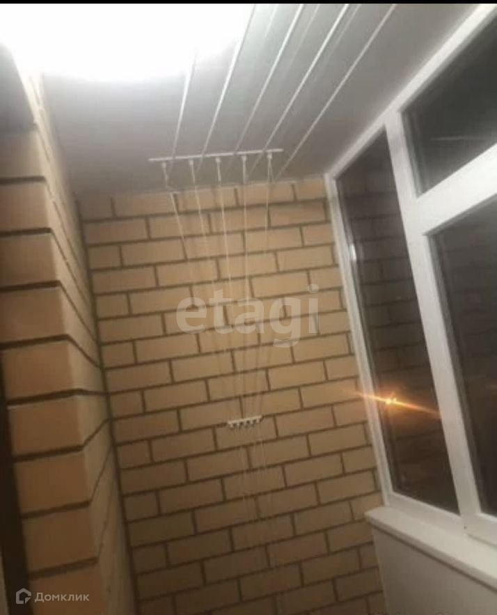 Застекленный балкон с подвесной сушилкой для белья. Вид из окна на детскую площадку, тихо и солнце до обеда, летом не так жарко.