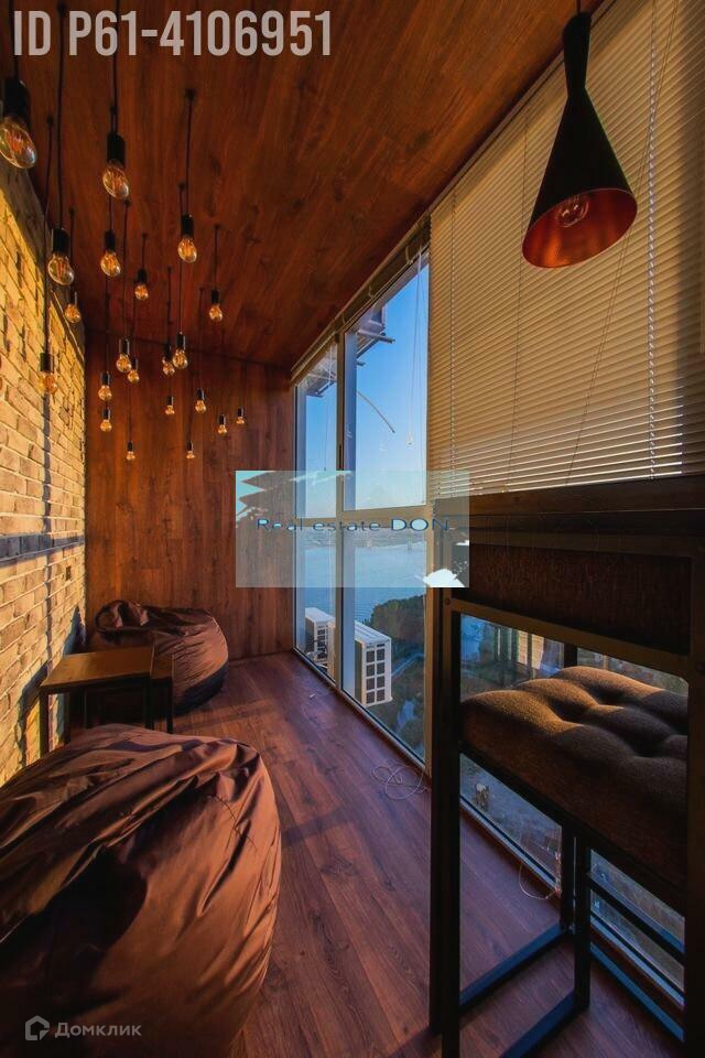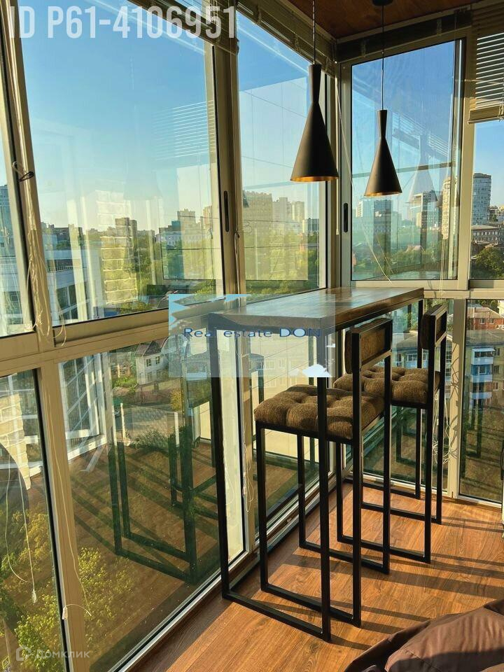 -Балкон (пуфы, стол, барная стойка, барные стулья) панорамное остекление, вид на Дон в сторону Ворошиловского моста.Район: дом на набережной реки Дон (в тихой ее части, рядом с рестораном Пирс), в 10 минутах ходьбы от Б.Садовой.Дом: 5 лет, кирпичный, 19 этажный, 1 подъездный, 2 лифта (1 грузовой) чистый подъезд, консьерж, спуск для колясок, подземный паркинг (есть возможность арендовать машино-место за 6-7т рублей (не у меня!!), выход из дома на Богатяновский, есть возможность выйти из дома через паркинг на Набережную, закрытый двор на 2 дома, въезд во двор только для разгрузки (прковкаа во дворе запрещена), детская площадка на уровне, свободном от автомобилей.Квартира: современный ремонт, счетчики на горячую холодную воду, электроэнергию, очень теплая – зимой практически полностью прикручиваем отопление, много мест для хранения, смарт TV, скоростной домашний интернет (до 100 Мбит с), фильтр с обратным осмосом