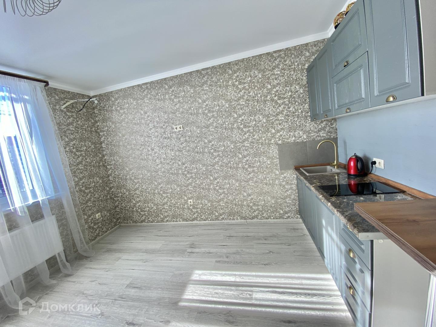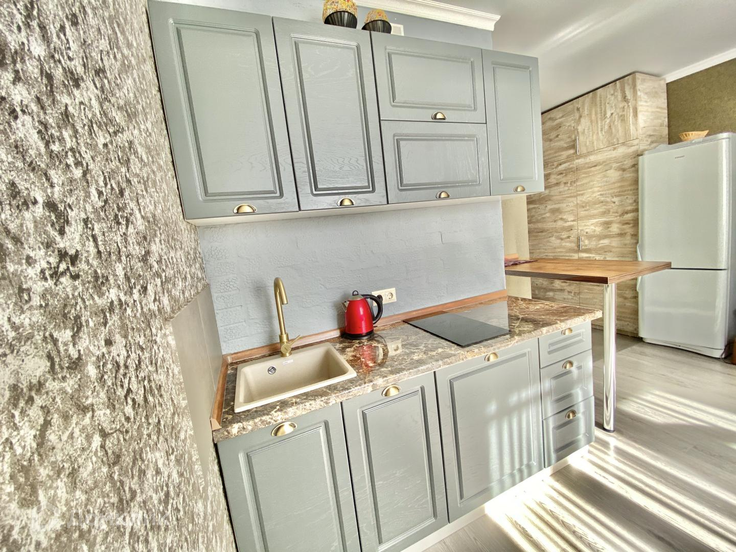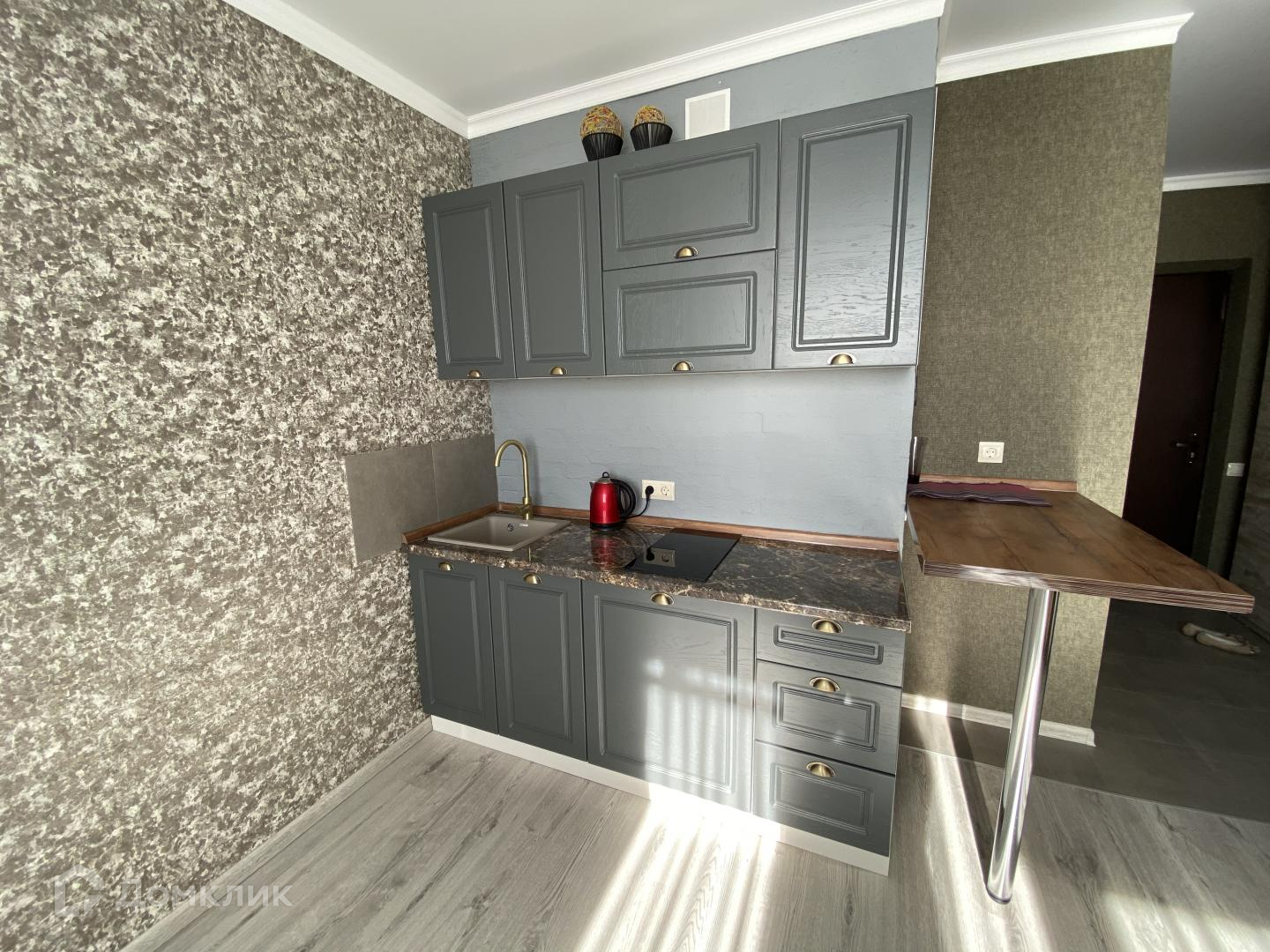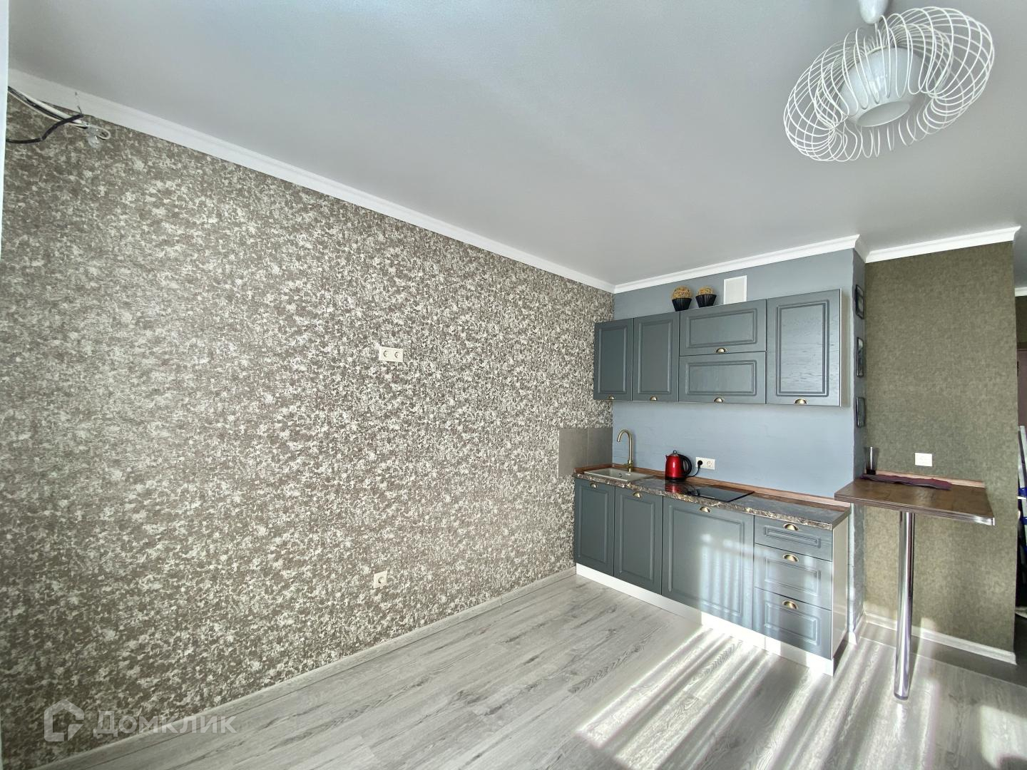Теперь о квартире: в совмещенном с/к кафель комбинированный — под мрамор + объемный с 3 d орнаментом, душ кабина, балкон/остеклен витражным остеклением, импортные обои, натяжные потолки, ламинат Tarkett. Комната очень просторная, светлая, квадратная, кухня удобно распланирована по правой стороне комнаты и лаконично оформлена барной стойкой.
