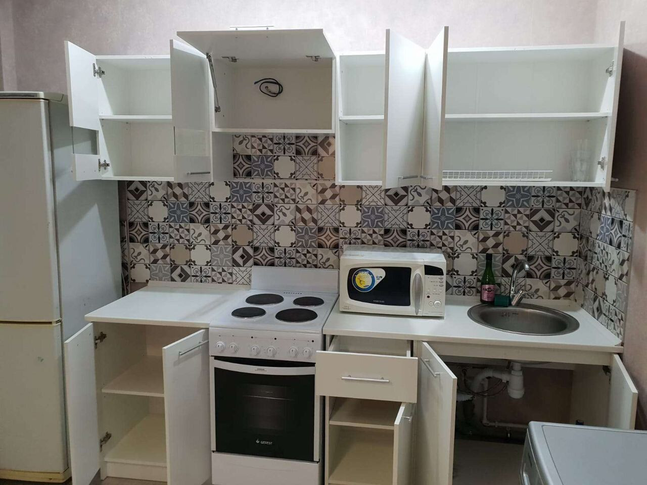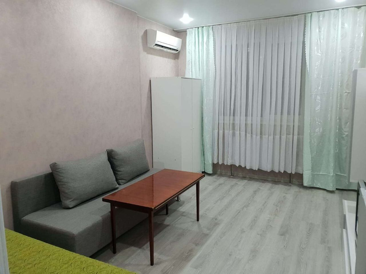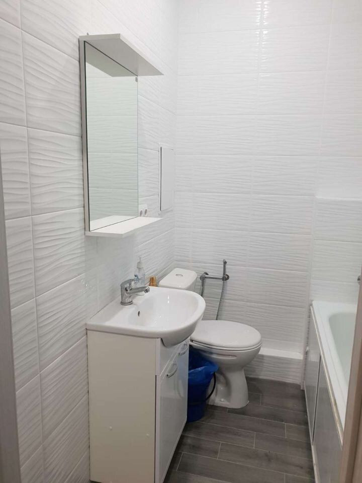 В квартире есть всё необходимое для комфортного проживания: теплые полы, мебель( 2 раскладывающихся дивана, горка под телевизор, 2 шкафа, стол кухонный и журнальный, стулья и бытовая техника: стиральная машина, микроволновка, телевизор, сплит система, холодильник, электрический чайник..В санузле ванна, гигиенический душ, унитаз, раковина с зеркалом и тумбой. Есть большая застеклённая лоджия. Развитая инфраструктура!