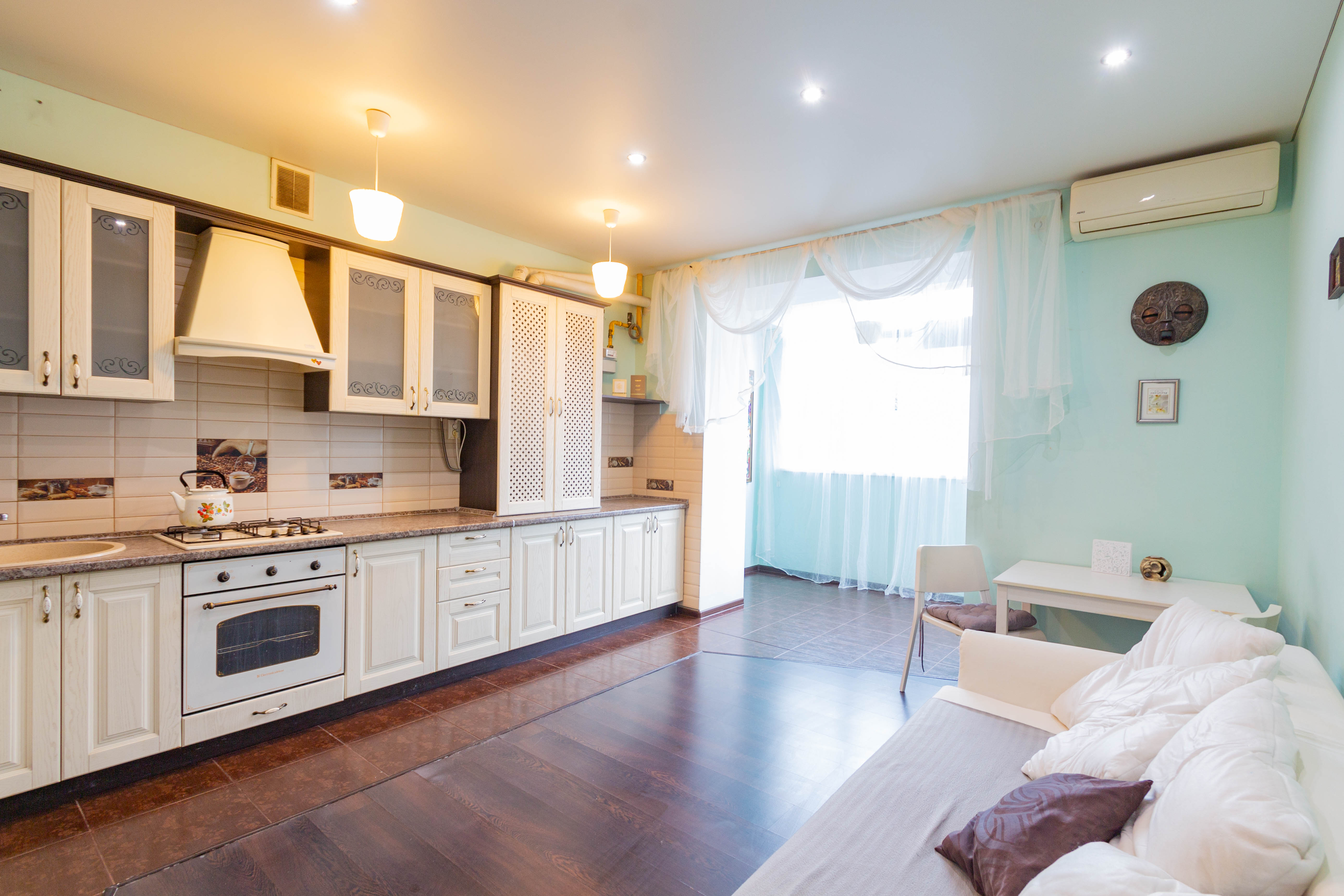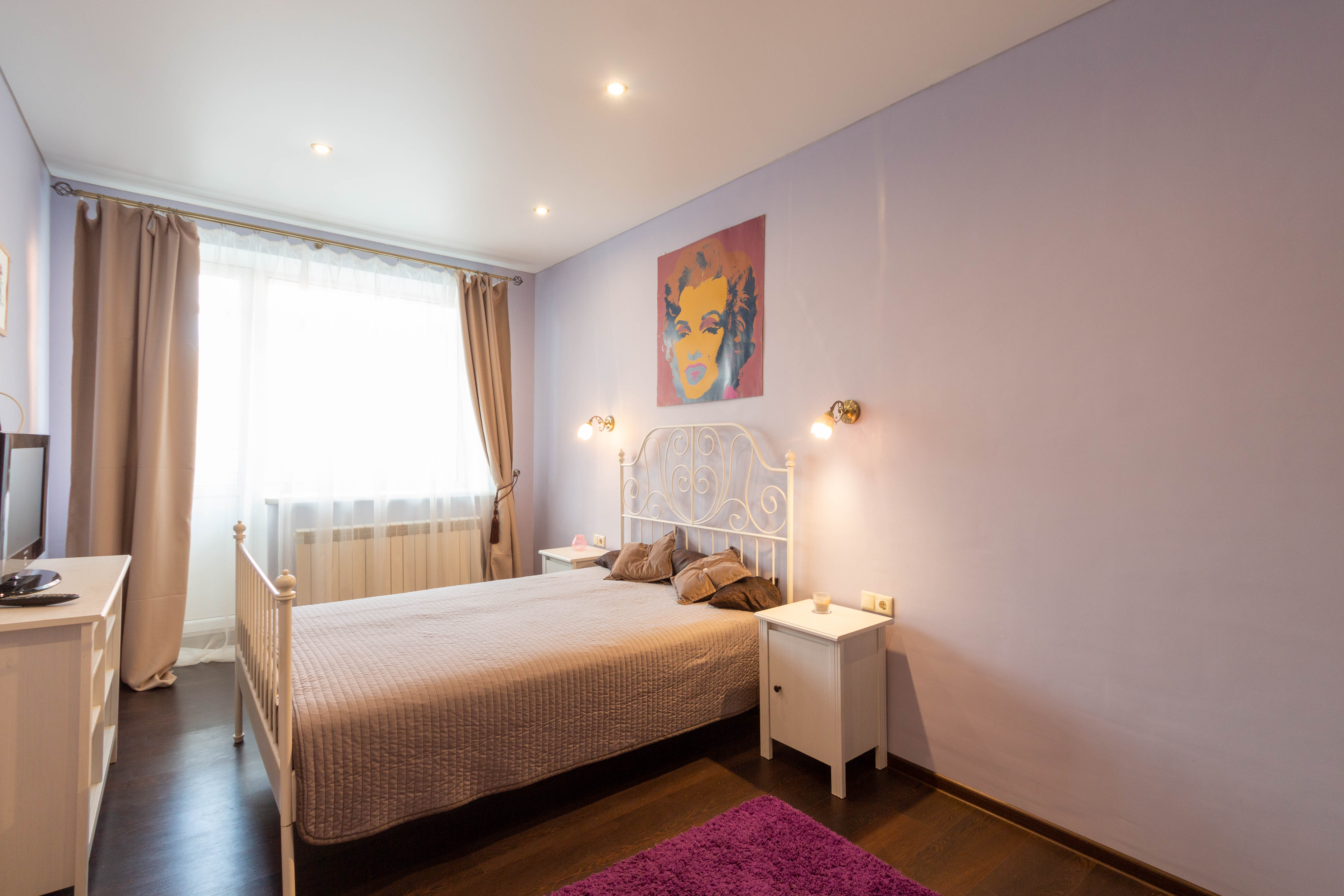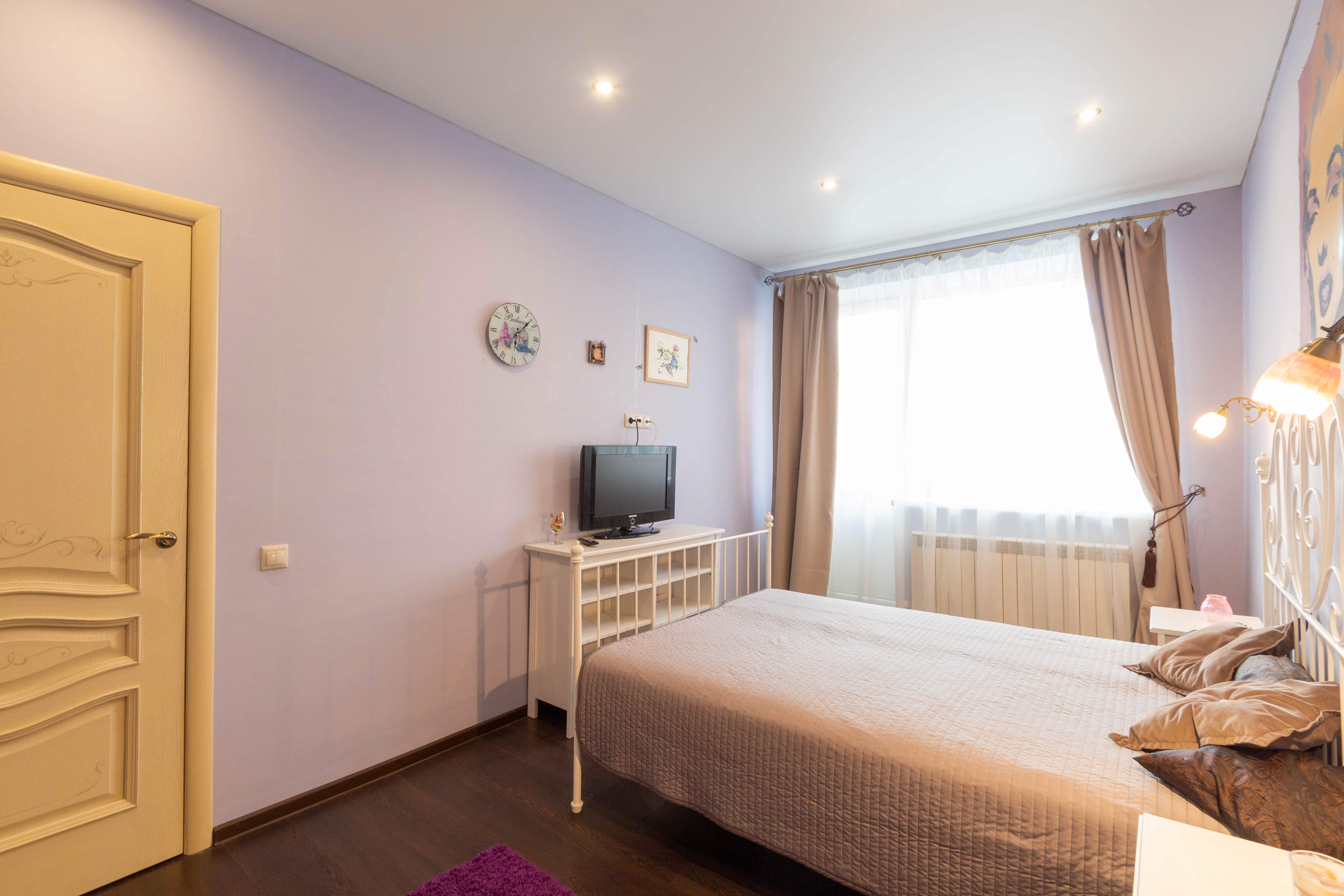 Площадь жилья составляет 58 м2. Эргономичная планировка вмещает в себя парадный холл, ванную комнату, кухонную зону, гостиную с выходом на застекленную и утепленную лоджию (жилая площадь), спальную комнату, гардеробная. В квартире выполнен ремонт, с использованием высококачественных материалов. Кухня и межкомнатные двери выполнены из массива дерева. Кухня укомплектована встроенной итальянской бытовой техникой. Ванная комната оснащена европейской сантехникой, стиральная машина. В квартире установлено индивидуальное отопление (нагревательный котел Buderus), теплый пол. Двуспальная кровать c ортопедическим матрасом. В гостиной расположен раскладной диван на два спальных места. Установлен кондиционер. Заведен высокоскоростной интернет (оптоволокно) кабельное телевидение (включены в стоимость). Под первым этажом, цоколь, первый этаж высокий с балконом.