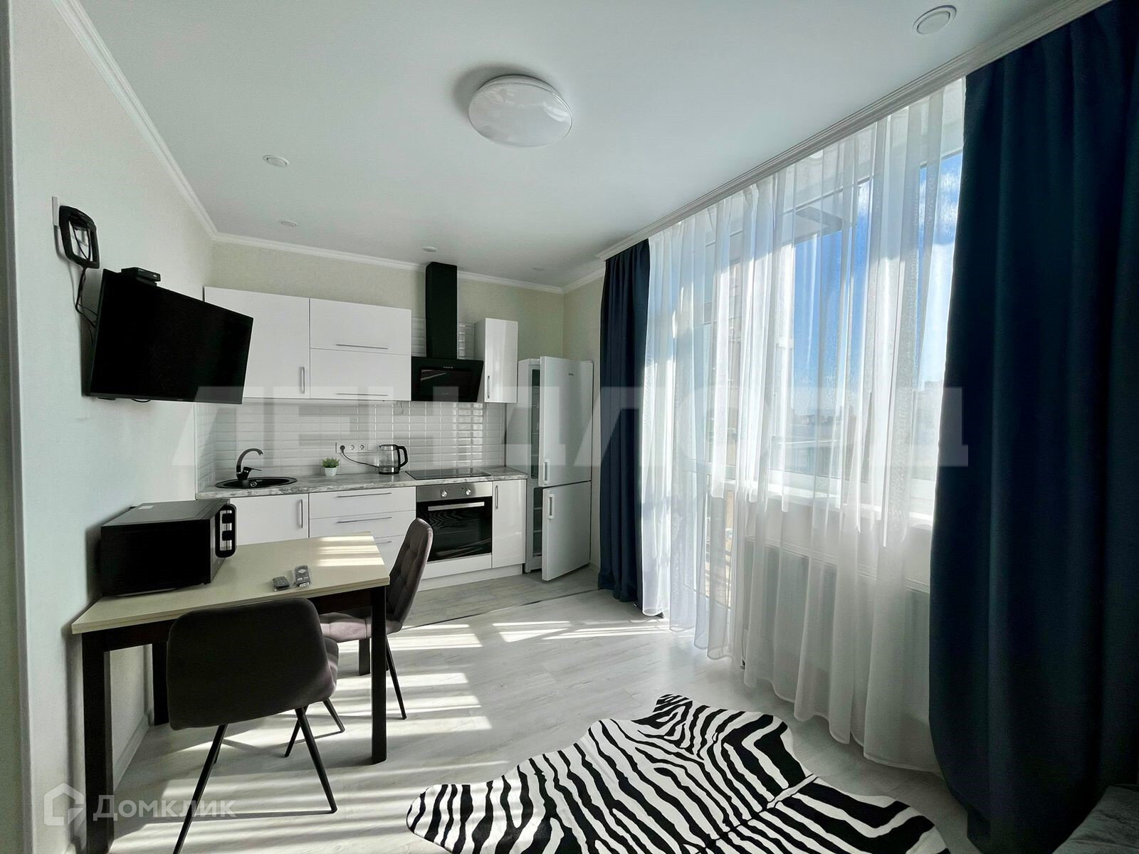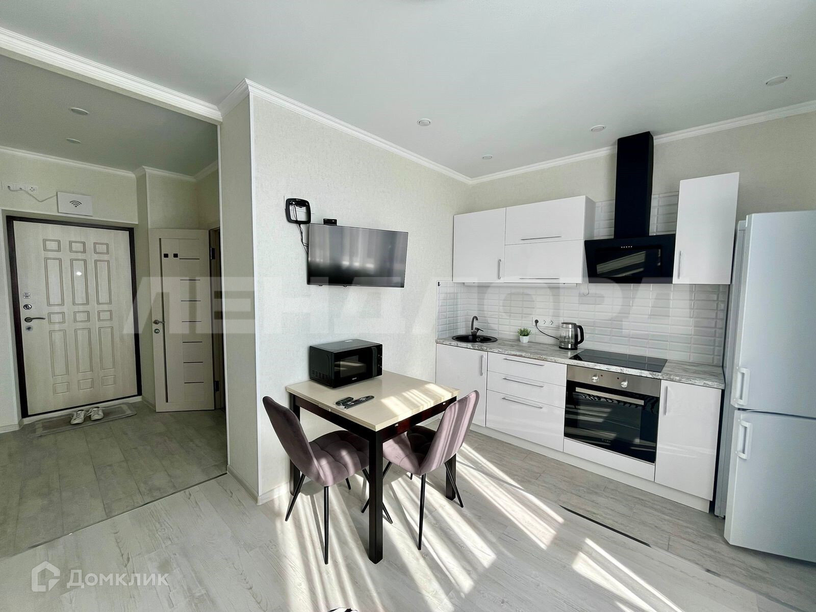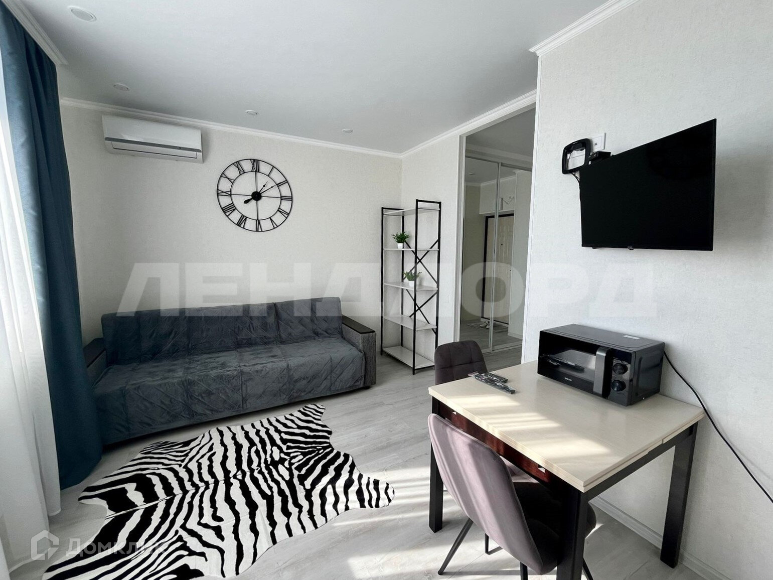 Студия оборудована всем необходимым для комфортного проживания (диван, стиральная машина, холодильник, сплит система)