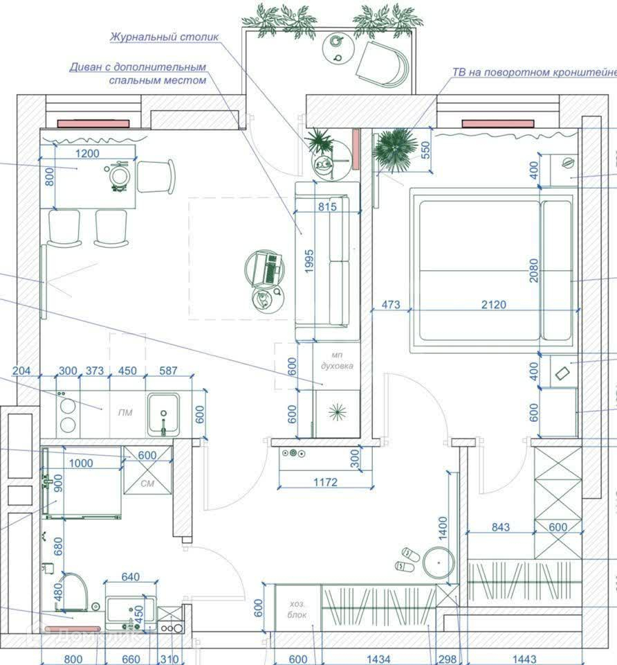 Общая площадь 43 м2