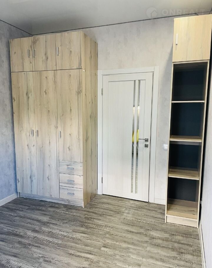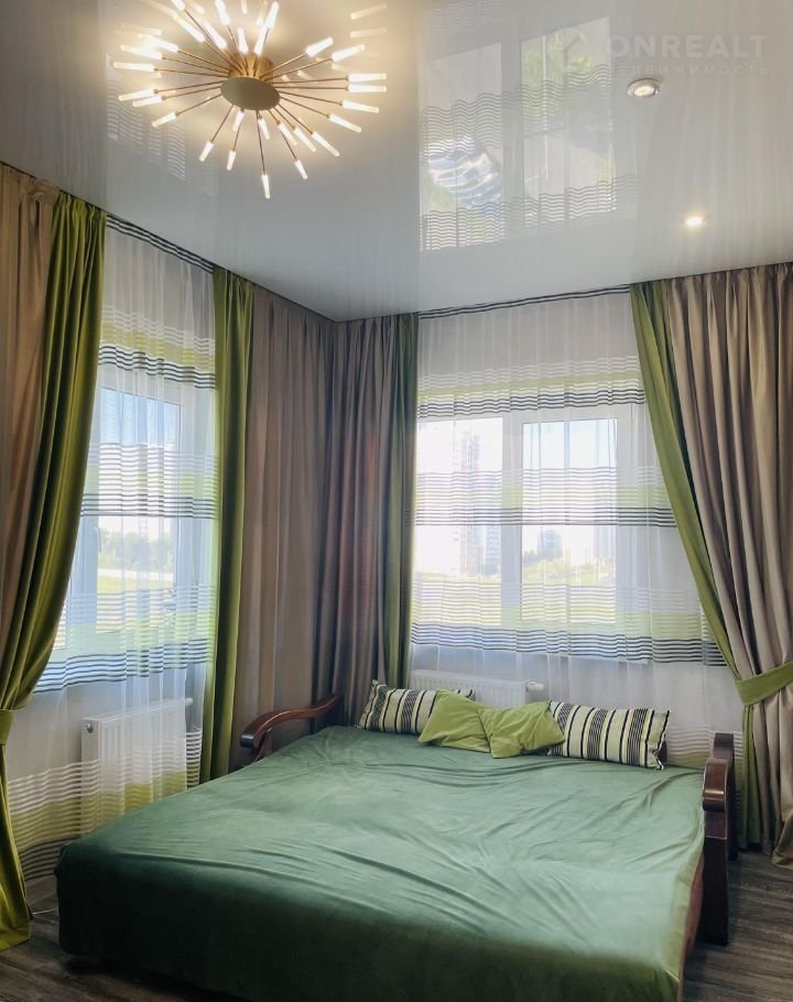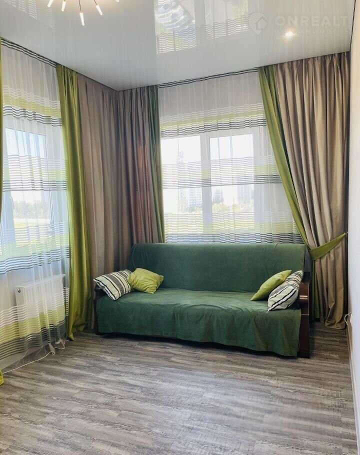 По всей квартире постелен ламинат, который придаёт интерьеру теплоту и уют. Натяжные потолки обеспечивают идеальную ровную поверхность и позволяют установить точечное освещение, создавая комфортную атмосферу.