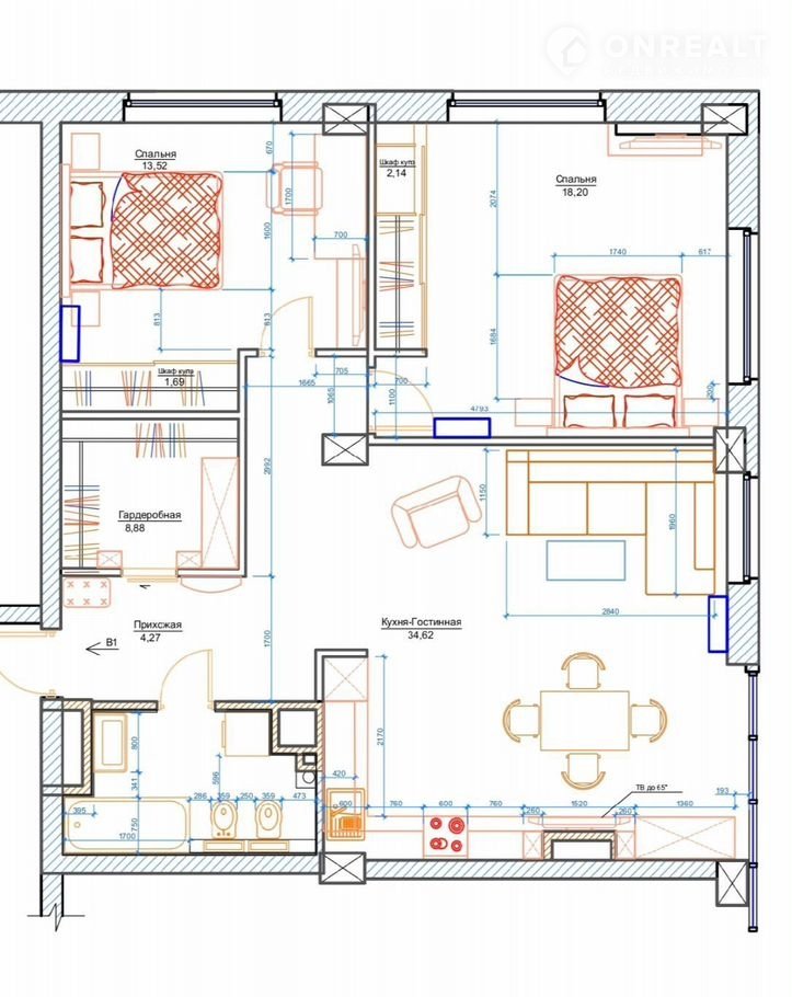 -- Удoбнaя и функциoнaльная плaнирoвка c кухней- гостиной, двумя изолированными спальнями;