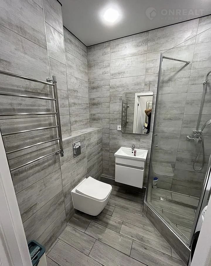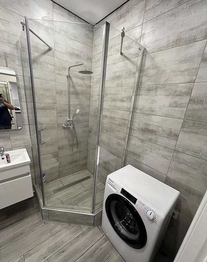 Особое внимание заслуживает современный санузел с душевой кабиной и стильной отделкой. Установлена стиральная машина для вашего удобства.