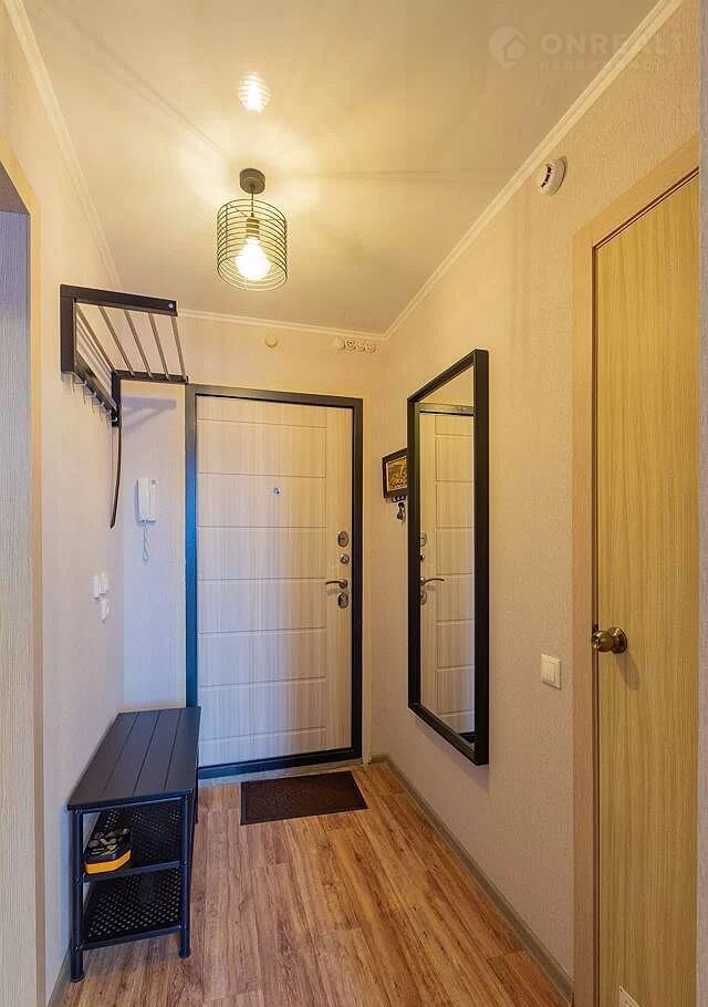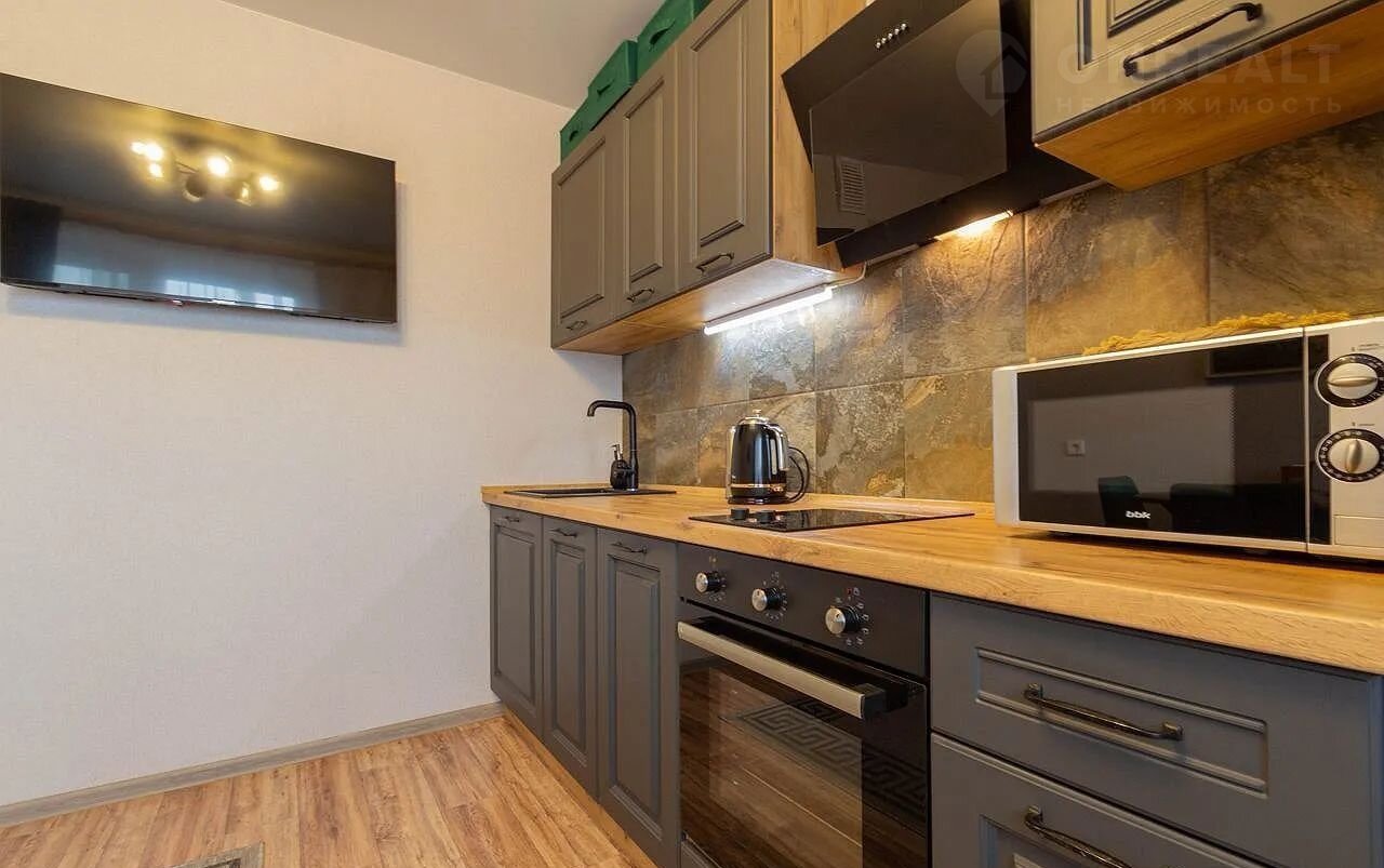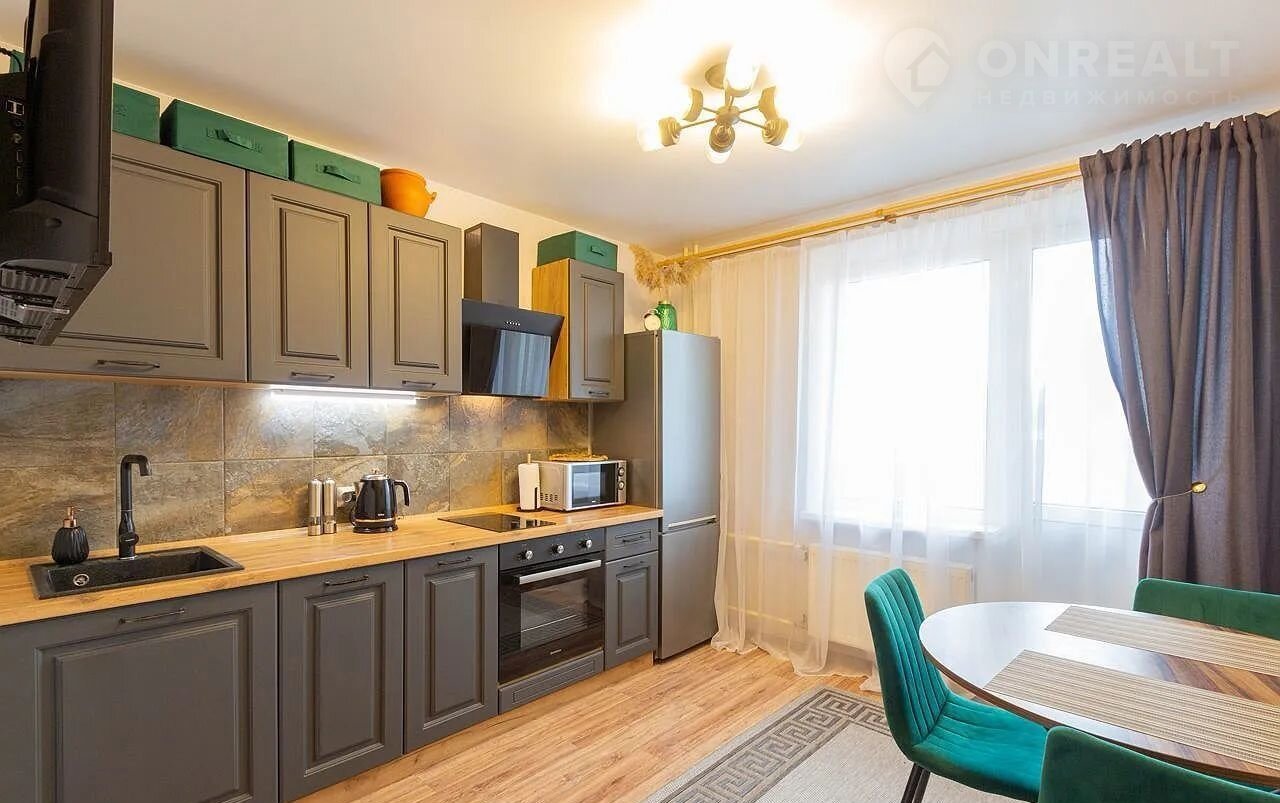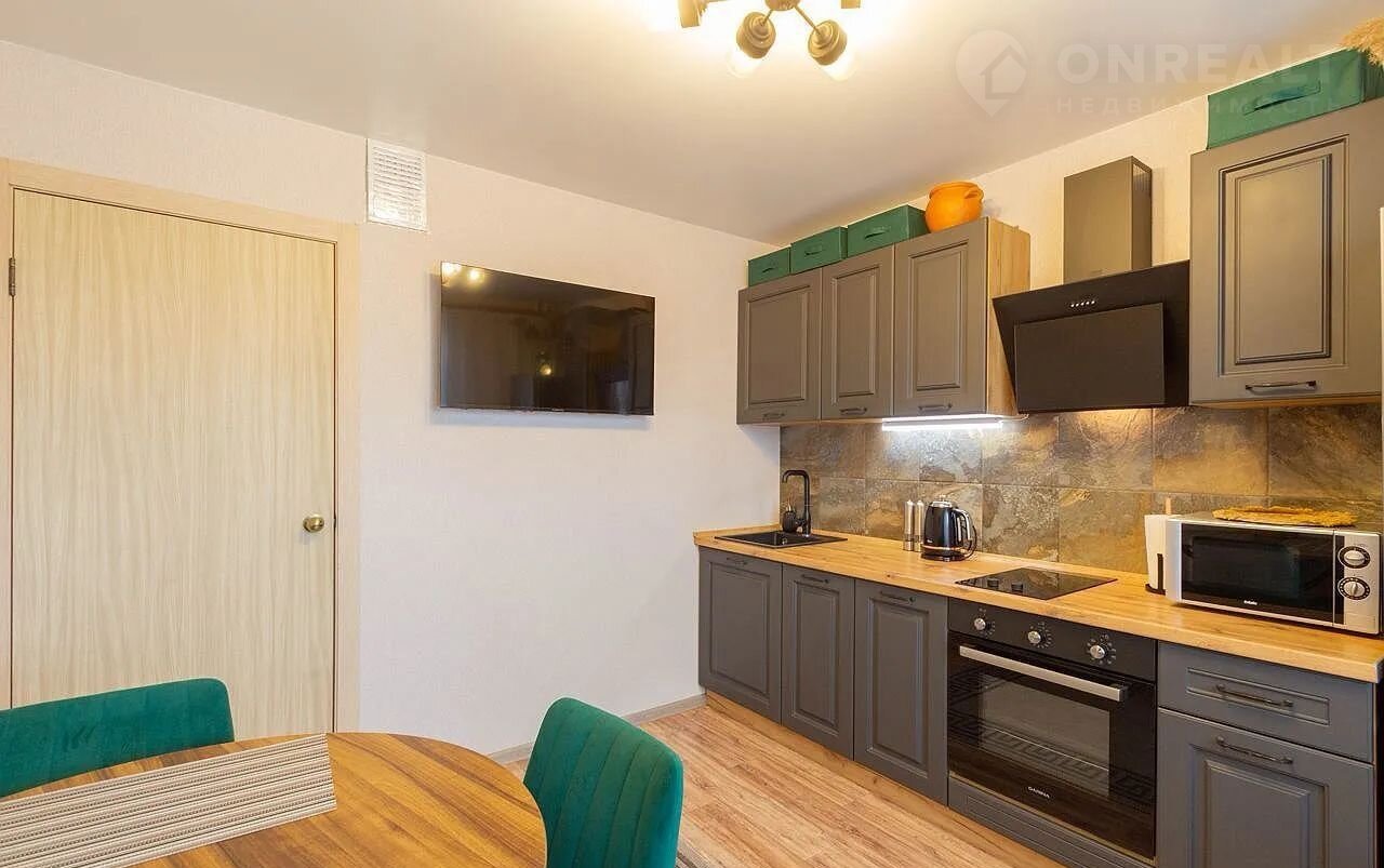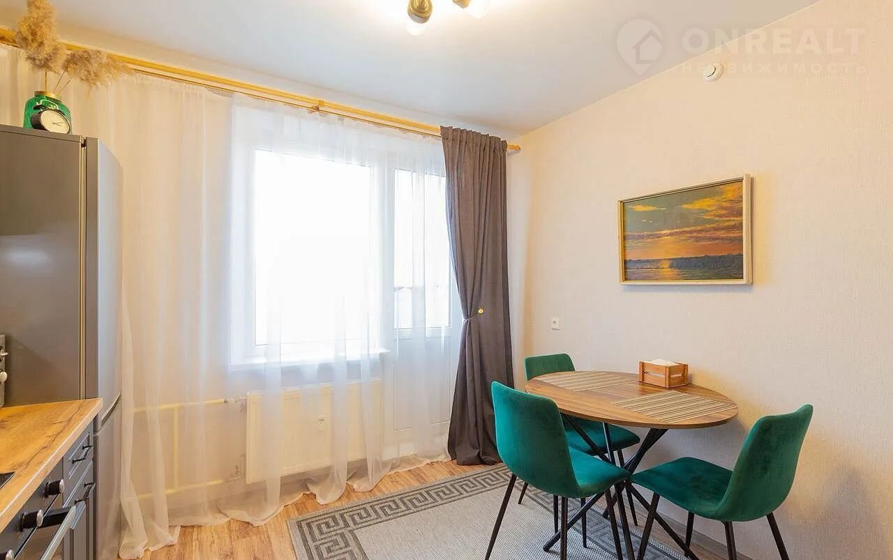 Квартира находится на последнем 18 этаже 18-этажного нового дома. Общая площадь составляет 35 квадратных метров, из которых 10 метров занимает просторная кухня — достаточно места для комфортного приготовления пищи и семейных обедов.