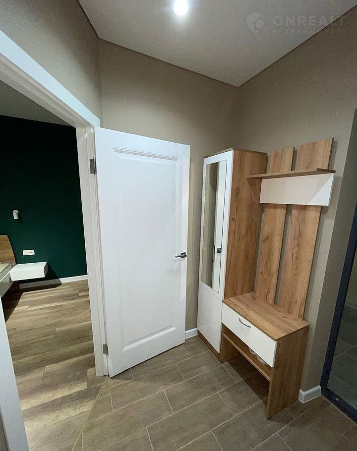 Квартира находится на третьем этаже 24-этажного современного жилого комплекса. Общая площадь составляет 34 квадратных метра, из которых 11 метров занимает просторная кухня — идеальное пространство для комфортного приготовления и приёма пищи.
