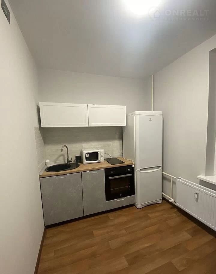Квартира находится на третьем этаже современного 19-этажного жилого комплекса. Общая площадь составляет 32 квадратных метра, из которых 8 метров занимает функциональная кухня — достаточно места для комфортного приготовления и приёма пищи.