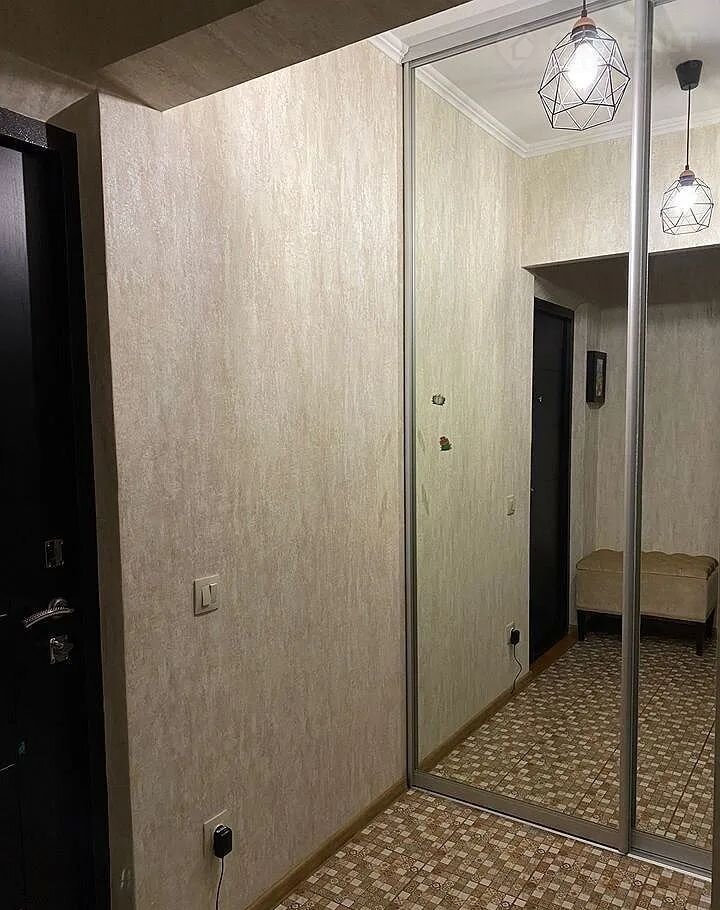 В жилой комнате вас ждёт комфортабельный двухспальный раскладной диван и вместительная современная стенка для хранения вещей. В коридоре установлен функциональный зеркальный шкаф-купе, который поможет организовать пространство для одежды.