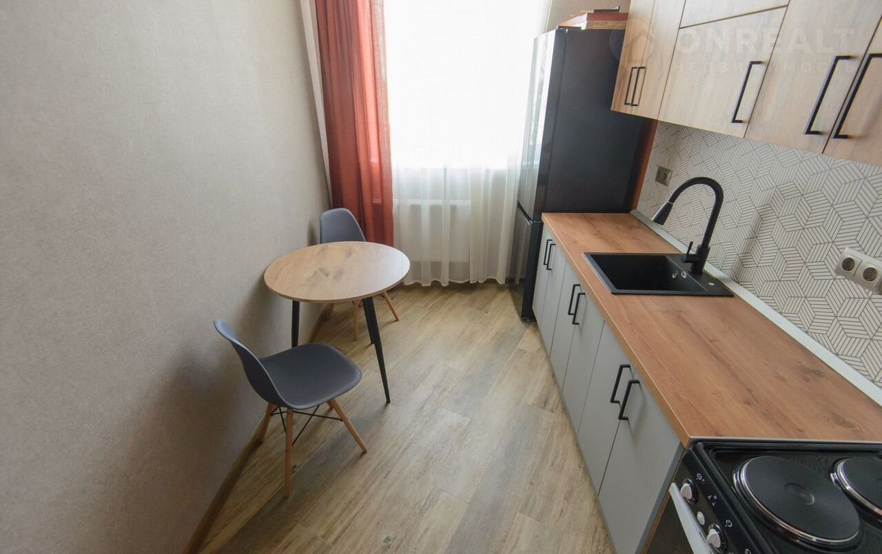 В кухне установлена электрическая печь и холодильник. Красивый панорамный балкон с видом на город и Ботанический сад ЮФУ.
