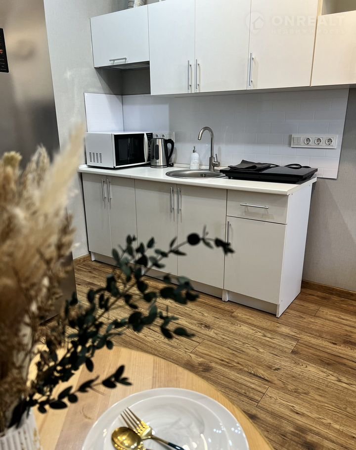 — несколько наборов посуды, электрический чайник, плита для приготовления еды, микроволновка