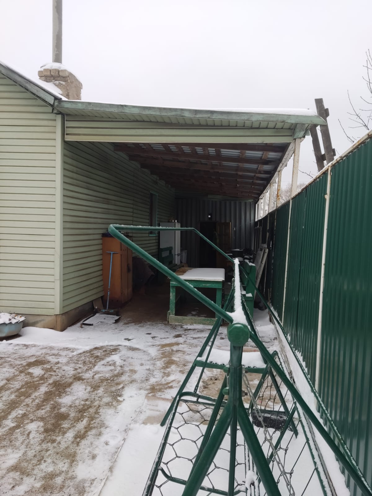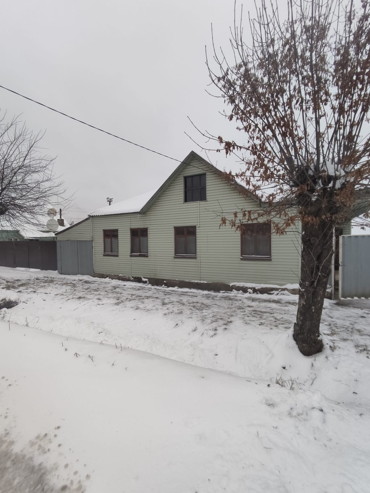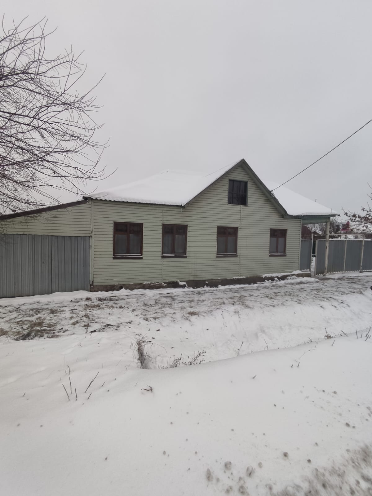 Дом хороший, бревенчатый, стоит на бетонном фундаменте, снаружи обшит сайдингом, крыша из профлиста. В доме три просторные комнаты, кухня, кладовое помещение и терраса. В доме есть электричество, холодная вода(подается насосной станцией из колодца), отопление паровое от угольного котла, природный газ обещают подвести в следующем году. Территория участка огорожена железным забором по всему периметру. На участке имеется колодец и сарай с чердаком, где раньше держали кур, коз. К дому пристроен гараж и навес. Небольшой торг при осмотре.
