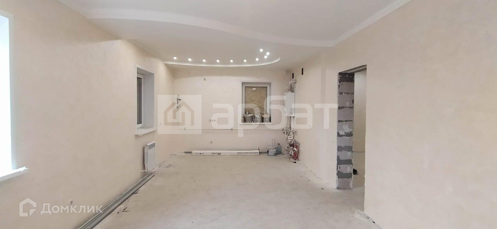 На кухне установлен двухконтурный котел, все коммуникации проведены по дому, батареи биметалл под каждым окном, в сан.узлах подведены все трубы.