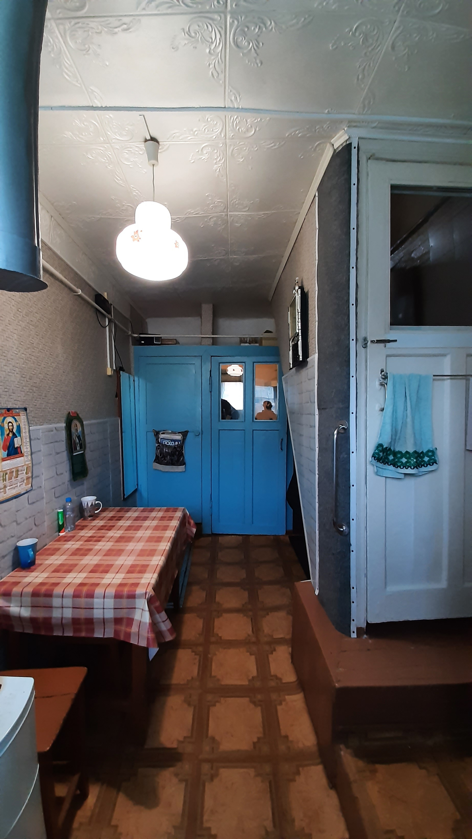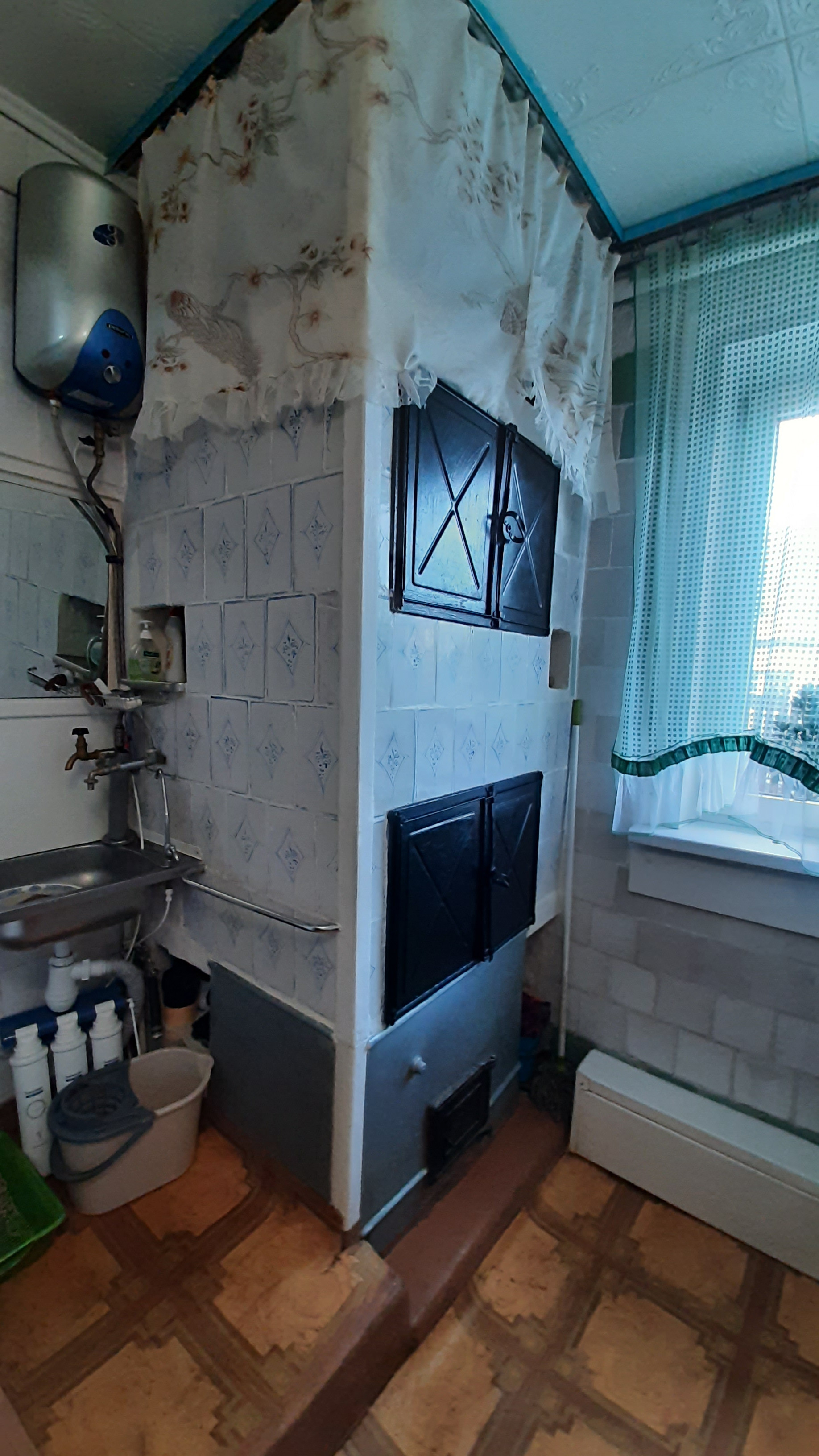 - на первом этаже располагаются четыре комнаты S=13,1+13,1+8,8+8,1 кв.м. в том числе занимаемая площадь встроенных шкафов и сервантов комнат. Две кухонные зоны 9,6+6,4 кв.м., каждая из которой имеет отдельный вход/выход на улицу. Центральный вход в дом представляет из себя крылечко с последующей прихожей в 4 кв.м.. Во второй кухонной зоне располагается печь(в отличном рабочем состоянии) отопительный газовый котёл, водонагревателный бойлер, лестницу на второй этаж и второй выход из дома на задний двор в гараж-мастерскую. Так же на первом этаже располагается туалет.